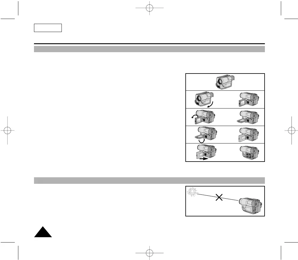 Unintended rotation may cause damage to the inside of the hinge that connects the LCD screen to the Camcorder.