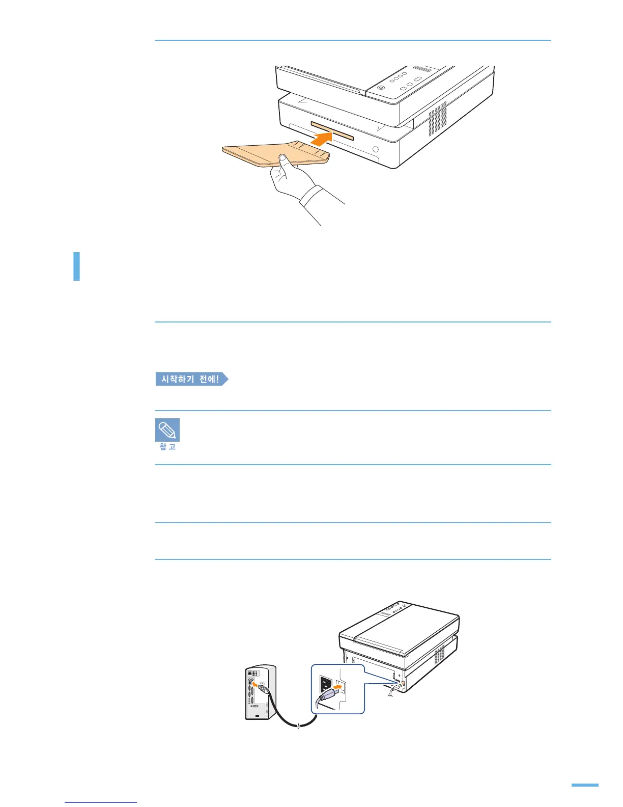 반드시 프린터와 컴퓨터의 전원이 꺼졌는지 확인하세요 .