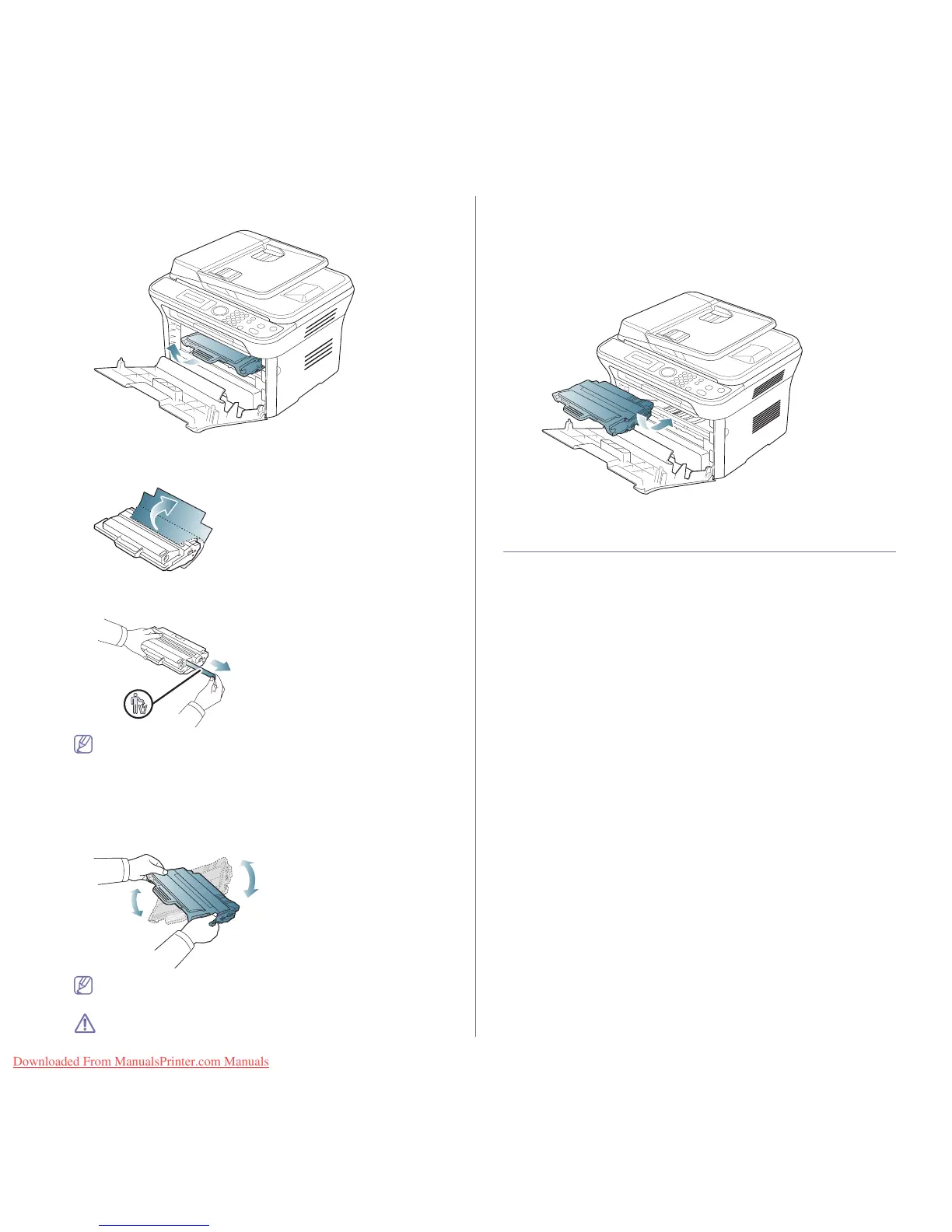 old the toner cartridge by the handle and slowly insert the cartridge into