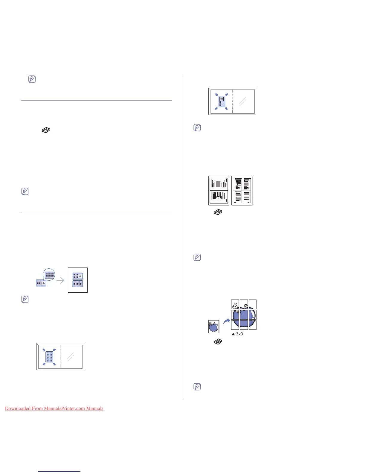 The machine reduces the size of the original images and prints 2 or 4 pages