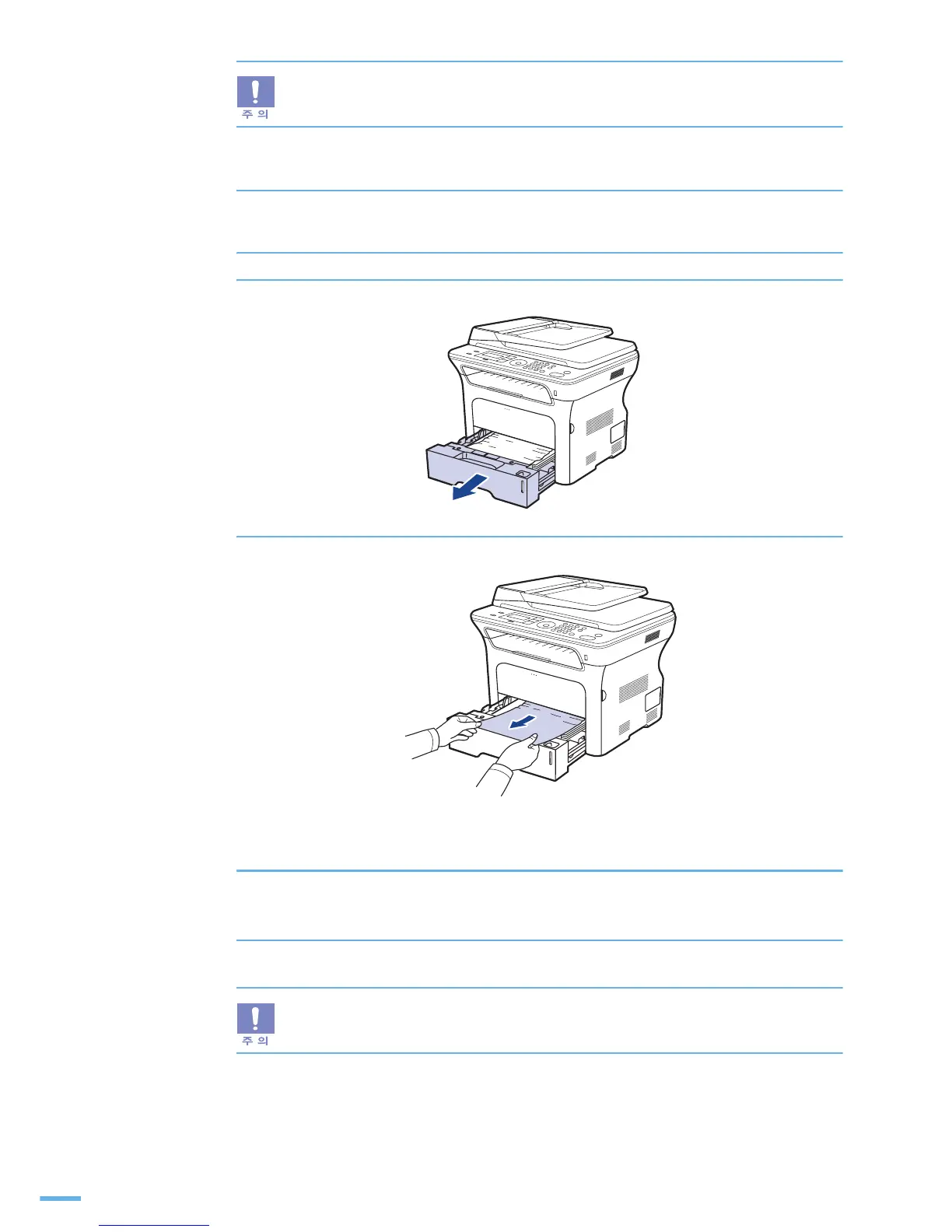 2 걸린 용지가 찢어지지 않도록 주의하여 천천히 잡아 당기세요 .