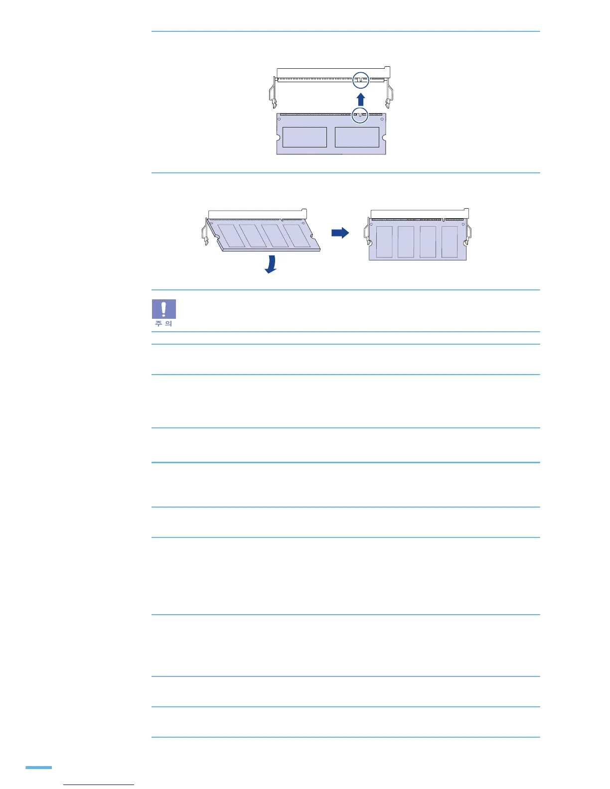 메모리를 슬롯에 고정시킬 때 너무 세게 누르지 마세요 . 그럴 경우 메모리가 파손될 수