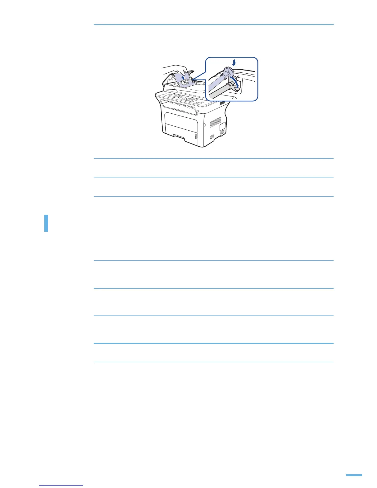 5 ADF 롤러의 왼쪽 끝을 자동 원고 급지장치의 왼쪽 홈에 끼우고 화살표