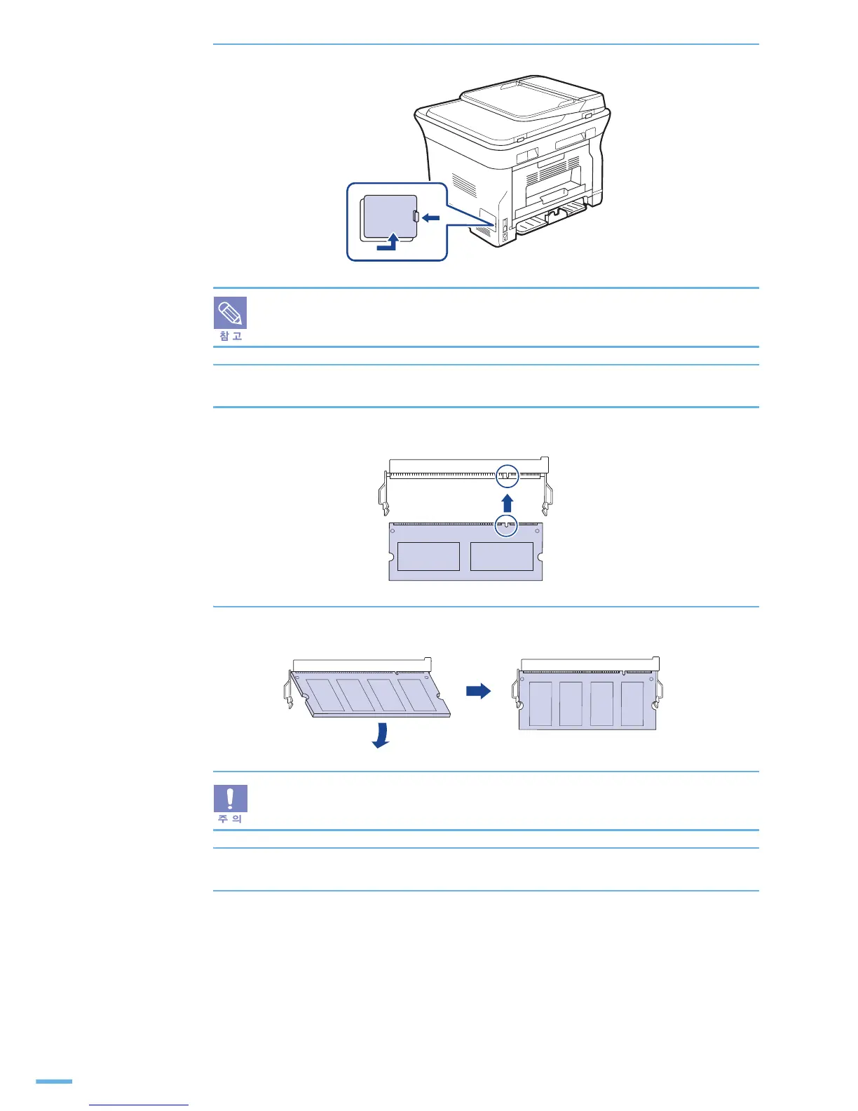 메모리를 슬롯에 고정시킬 때 너무 세게 누르지 마세요 . 그럴 경우 메모리가 파손될 수