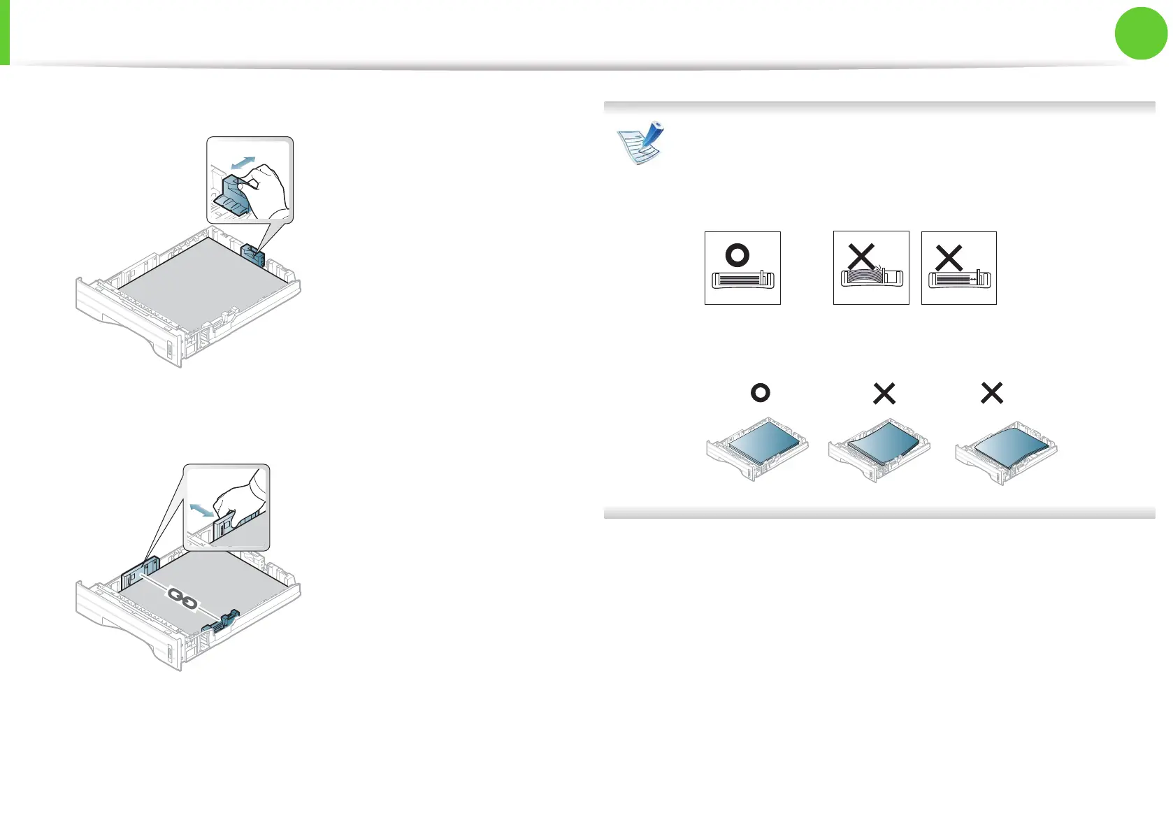 • 용지 너비 가이드를 적절히 조절하지 않으면 용지 걸림