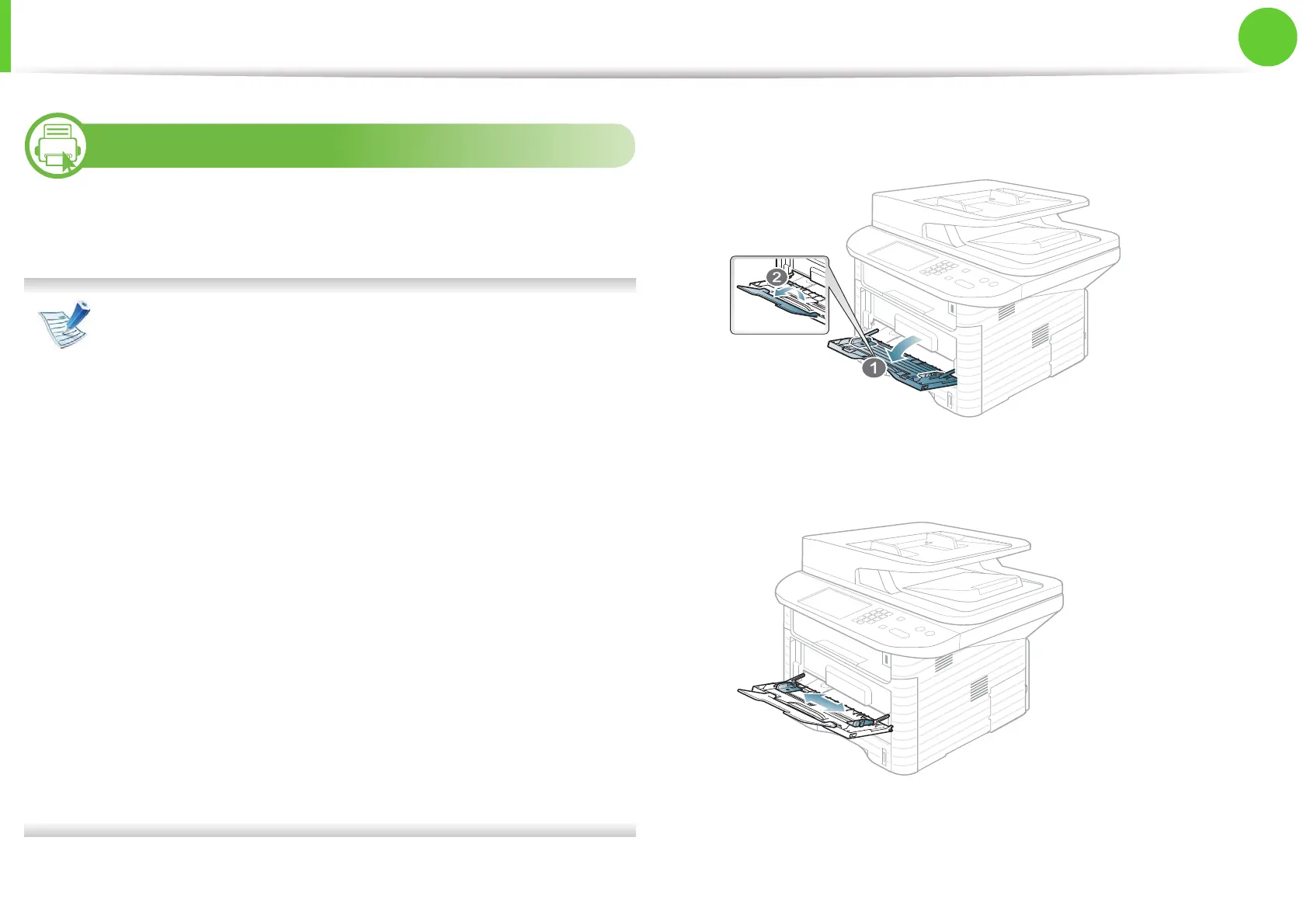 다목적 용지함을 열고 그림과 같이 다목적 용지함 받침대를
