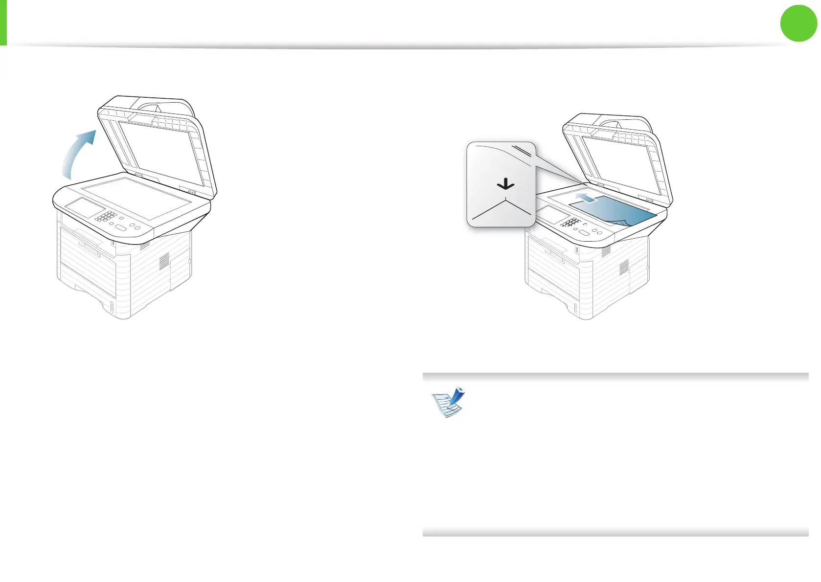 • 급지 장치를 열고 복사를 하면 빛에 노출되는 부분이 검