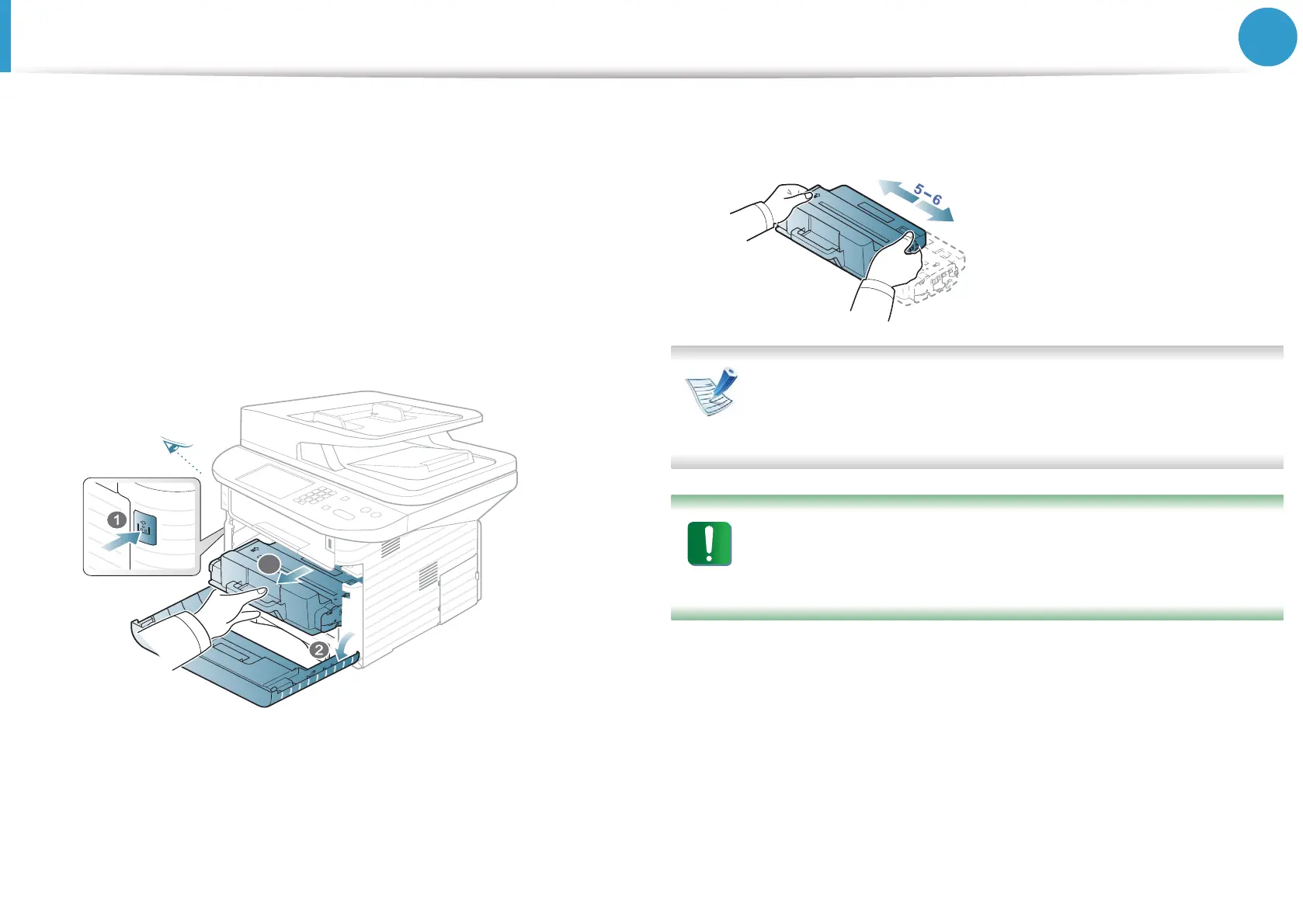 카트리지 내부의 토너가 고루 섞이도록 5~6회 정도 천천히