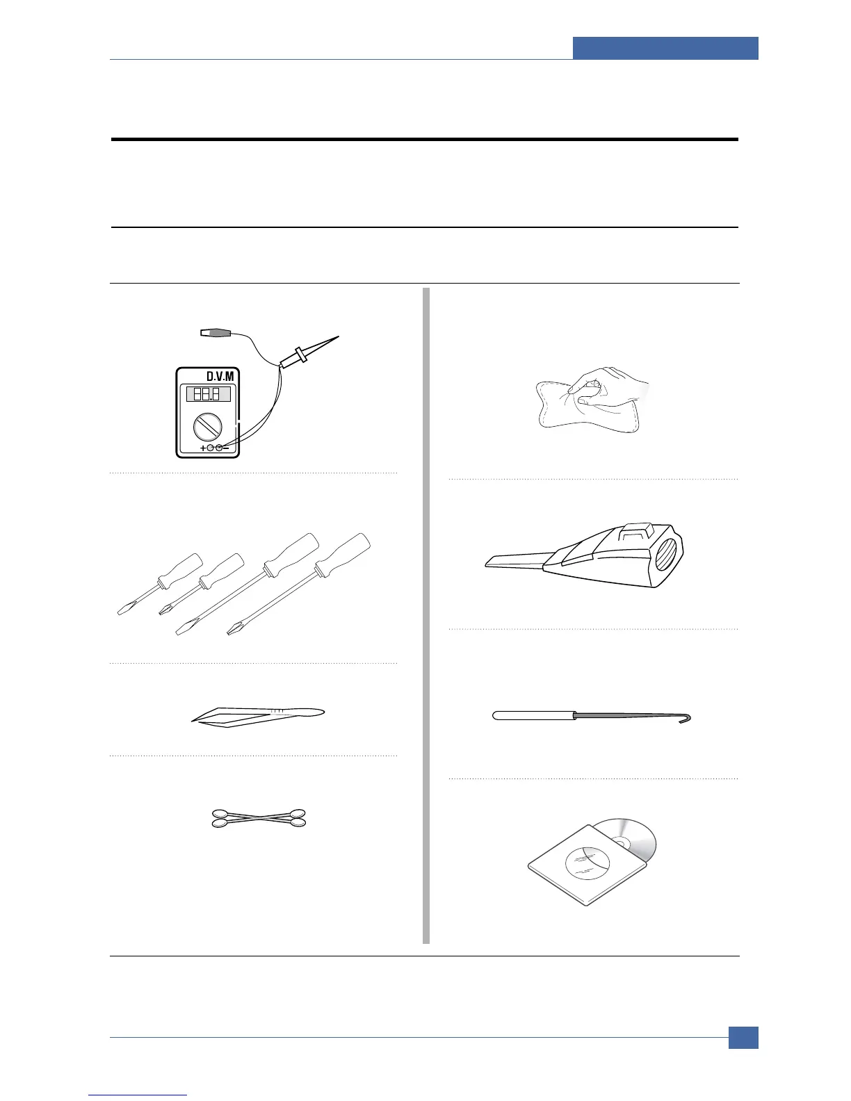 The following tools are recommended safe and easy troubleshooting as described in this service manual.