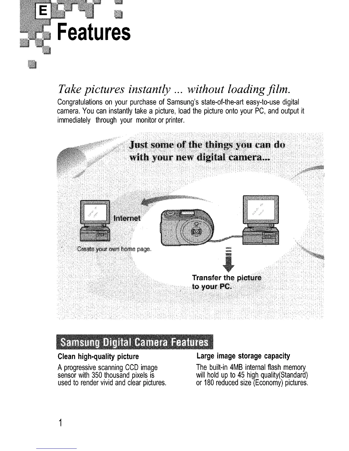 camera.You can instantlytake a picture,loadthe pictureonto your PC, andoutput it