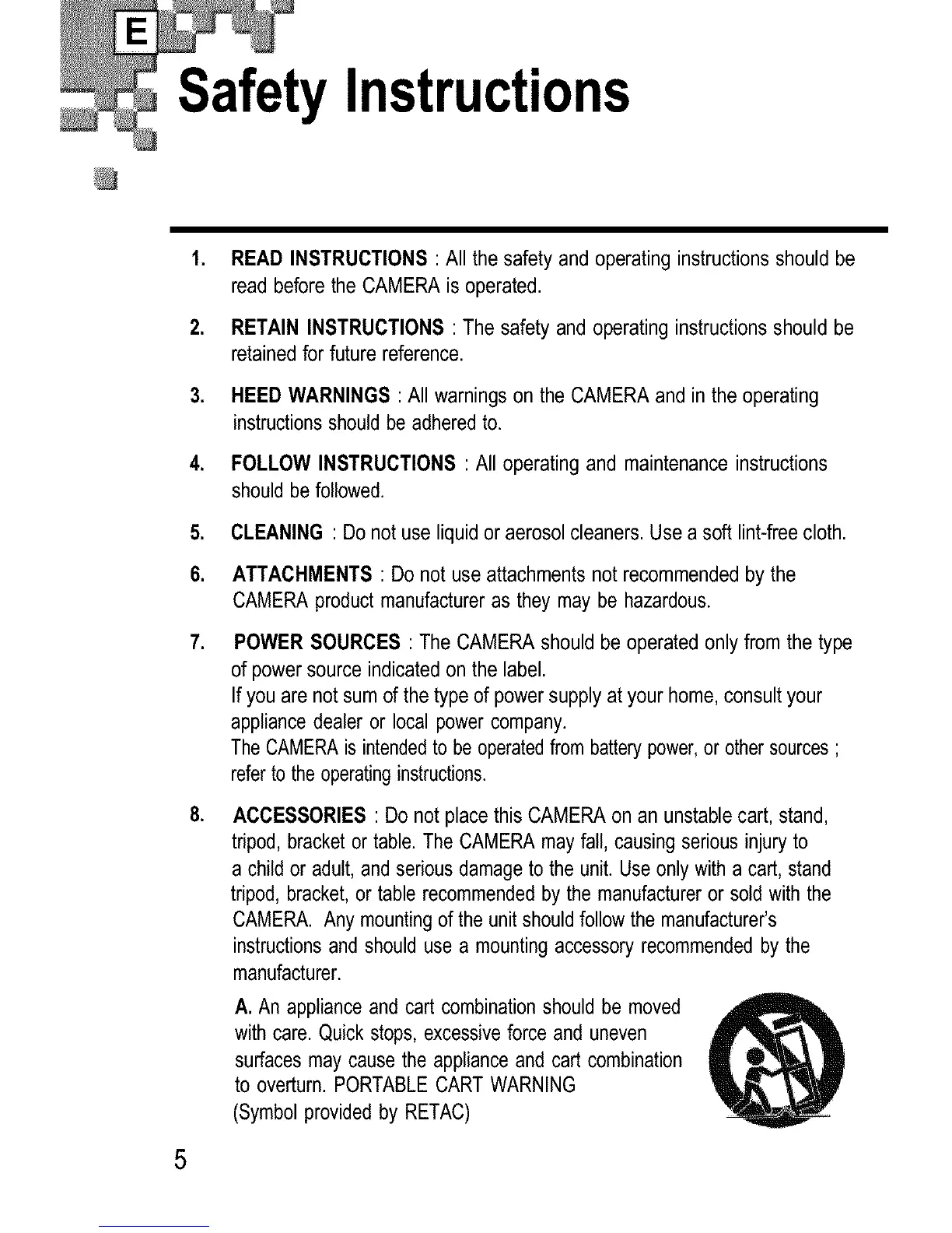 ACCESSORIES : Do not placethis CAMERAon an unstablecart, stand,