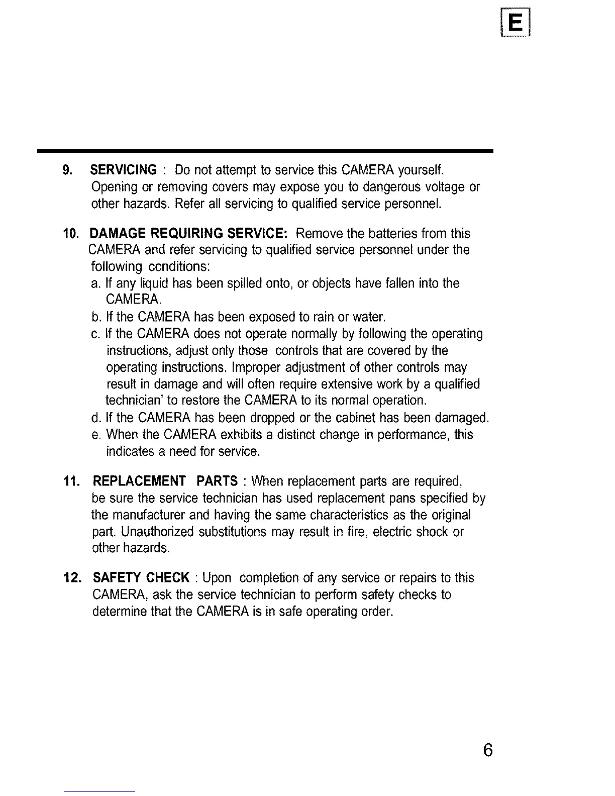 SERVICING : Do not attempt to service this CAMERA yourself.