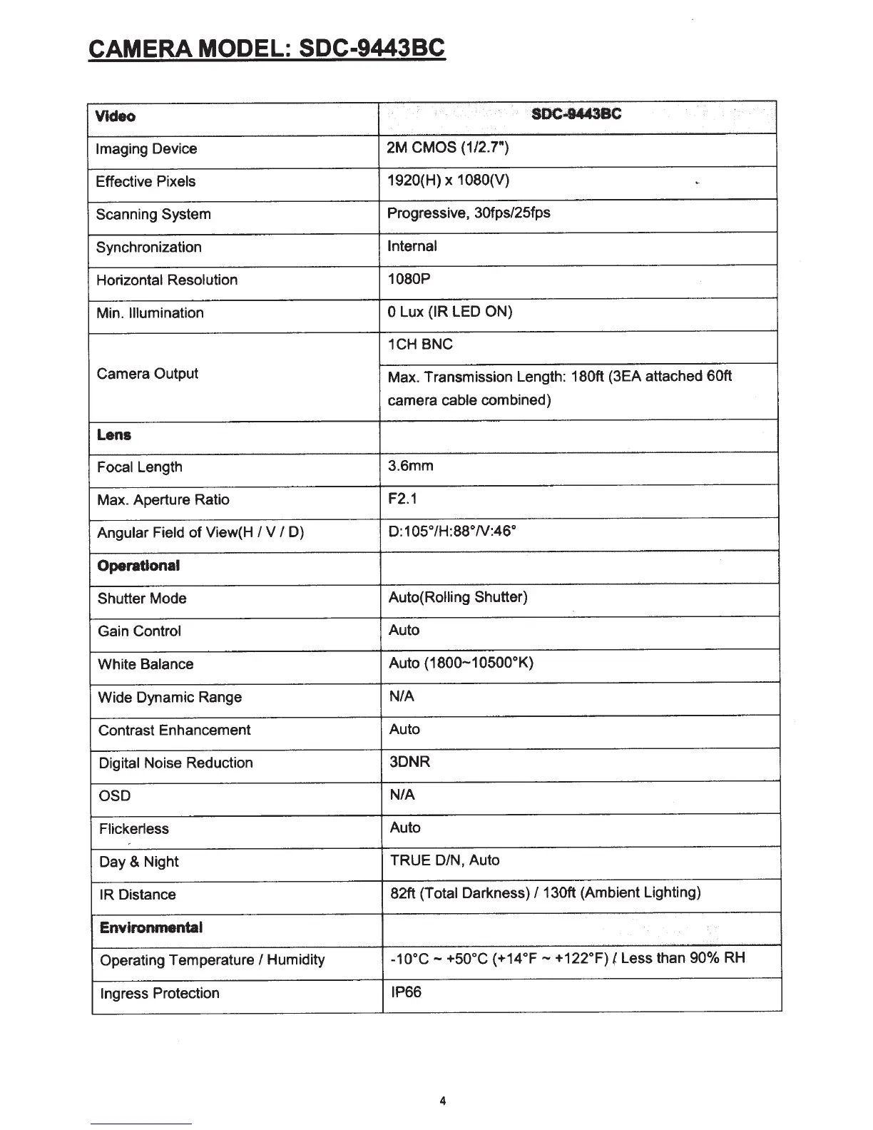 CAMERA MODEL: SDC-9443BC