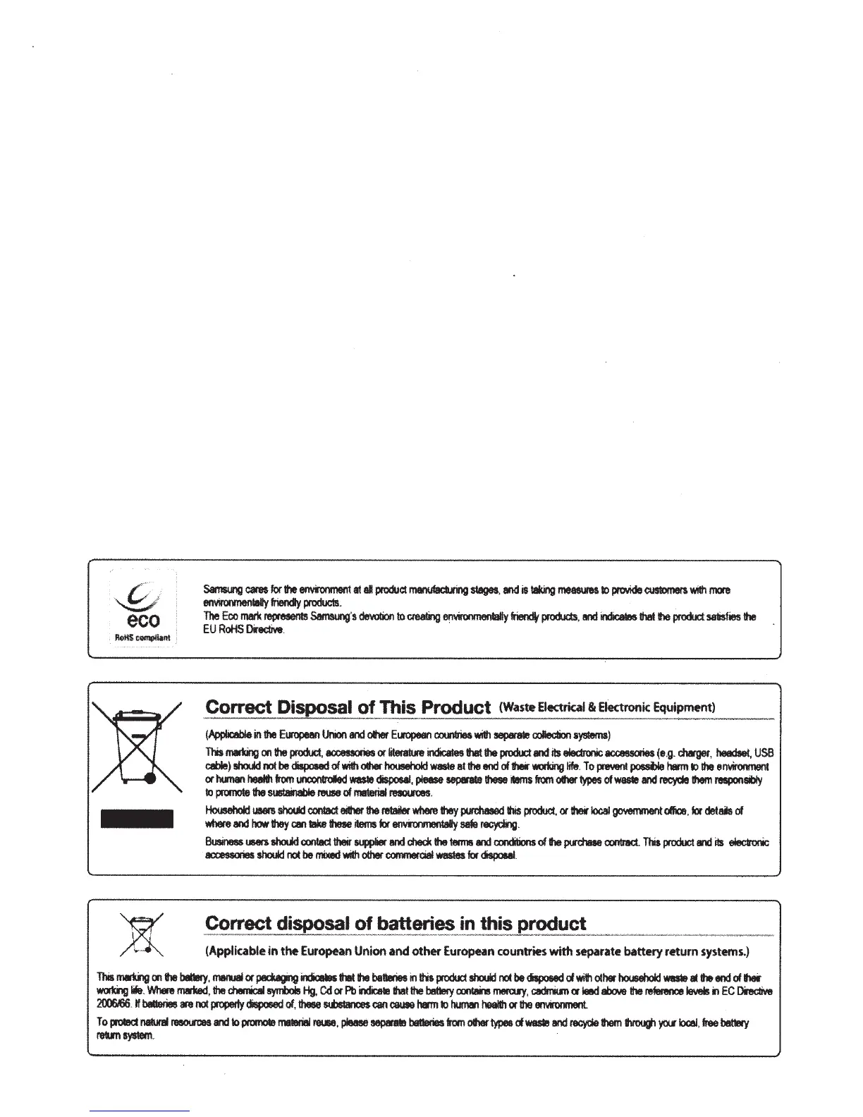 Samsung SDC-9443BC - Environmental Compliance and Disposal; Eco and RoHS Compliance; Product and Battery Disposal