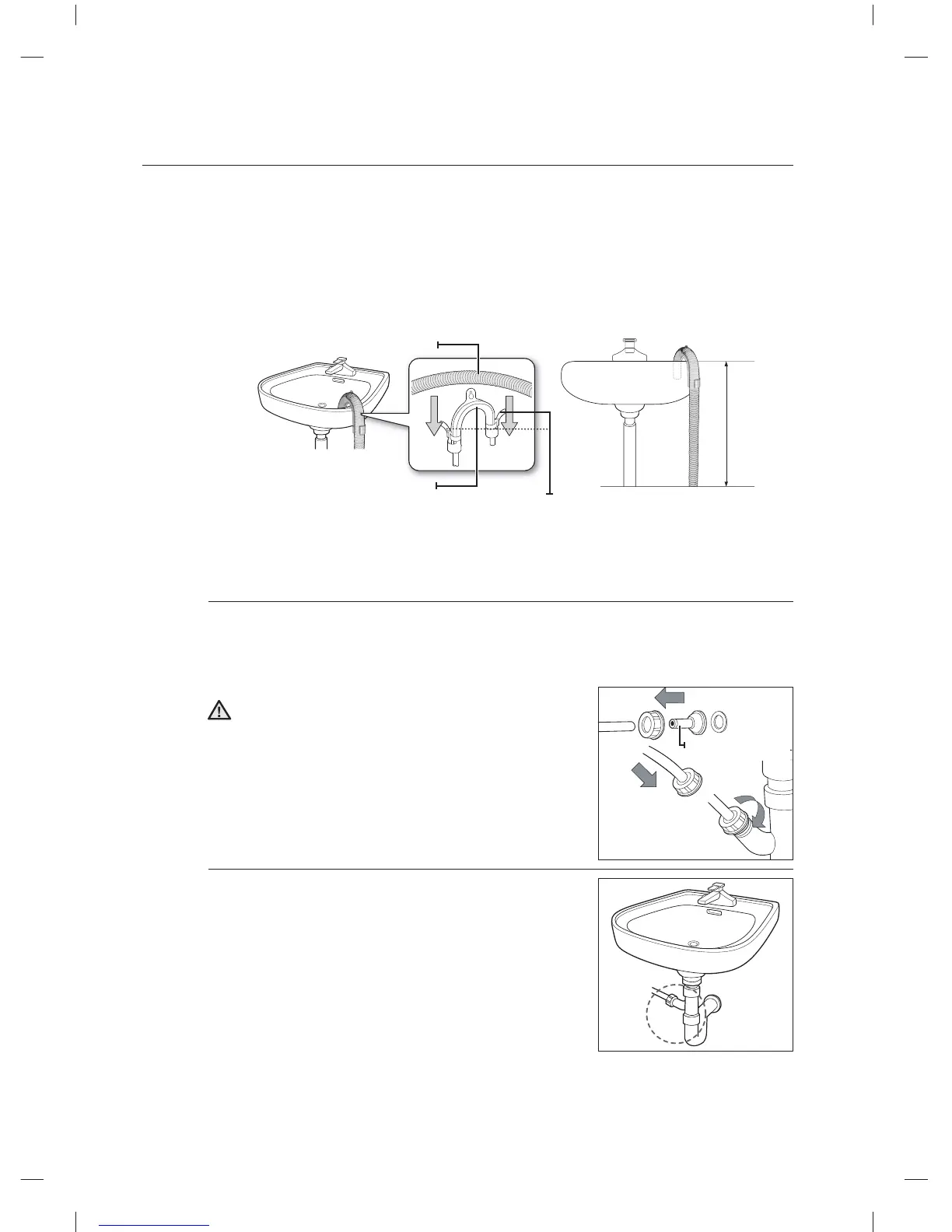 1. Over the edge of a wash basin: The drain hose must be placed lower than 90cm. If the end