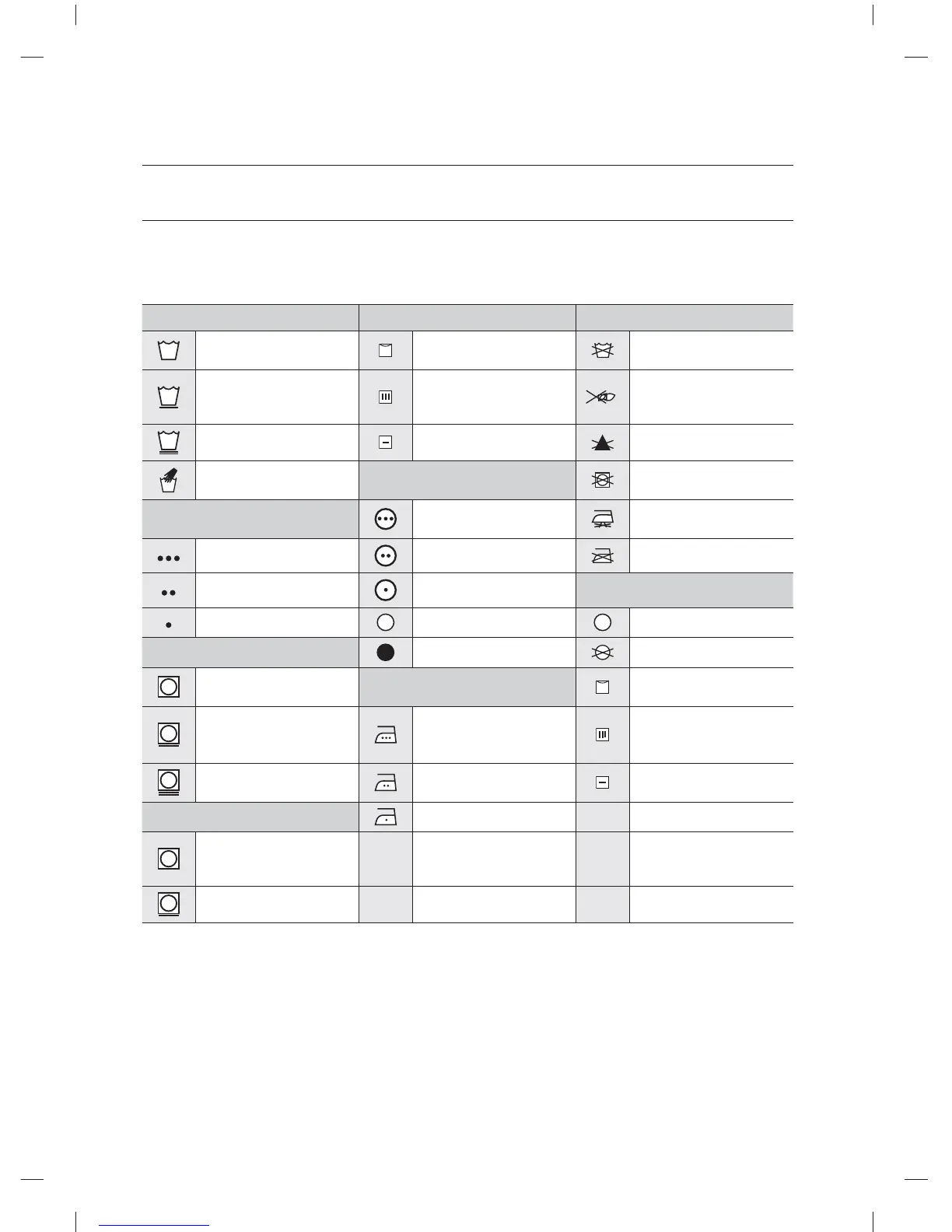 Oheiset symbolit antavat vaatteiden hoito-ohjeita. Hoito-ohjemerkintöihin kuuluvat kuivauksen, valkaisun,