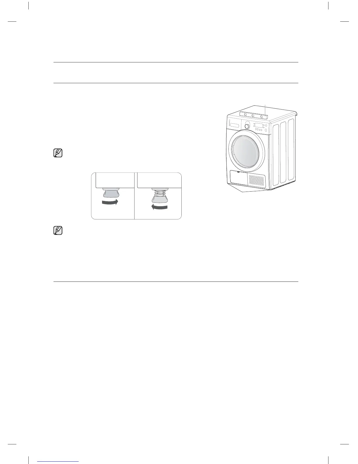 Indstil kun justeringsfødderne så meget, som det er nødvendigt for at få tørretumbleren i vater.