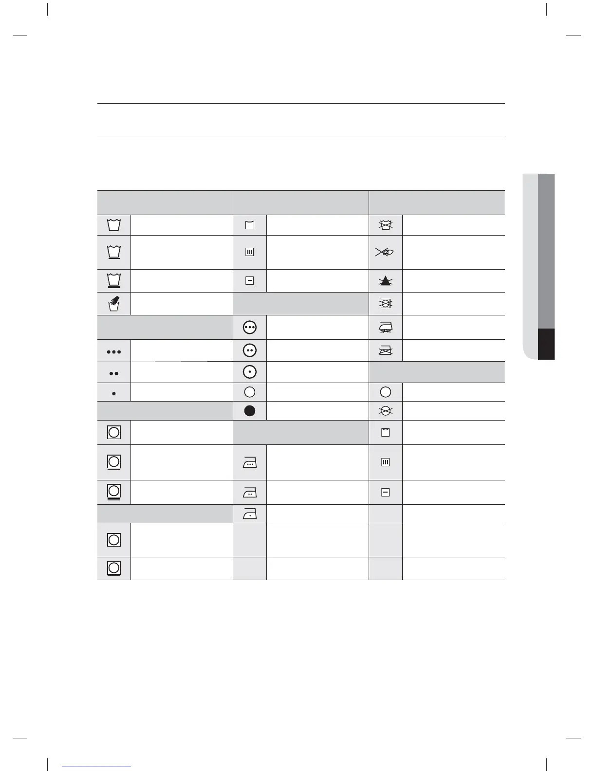 The following symbols provide garment care direction. The Clothing care labels include symbols for drying,
