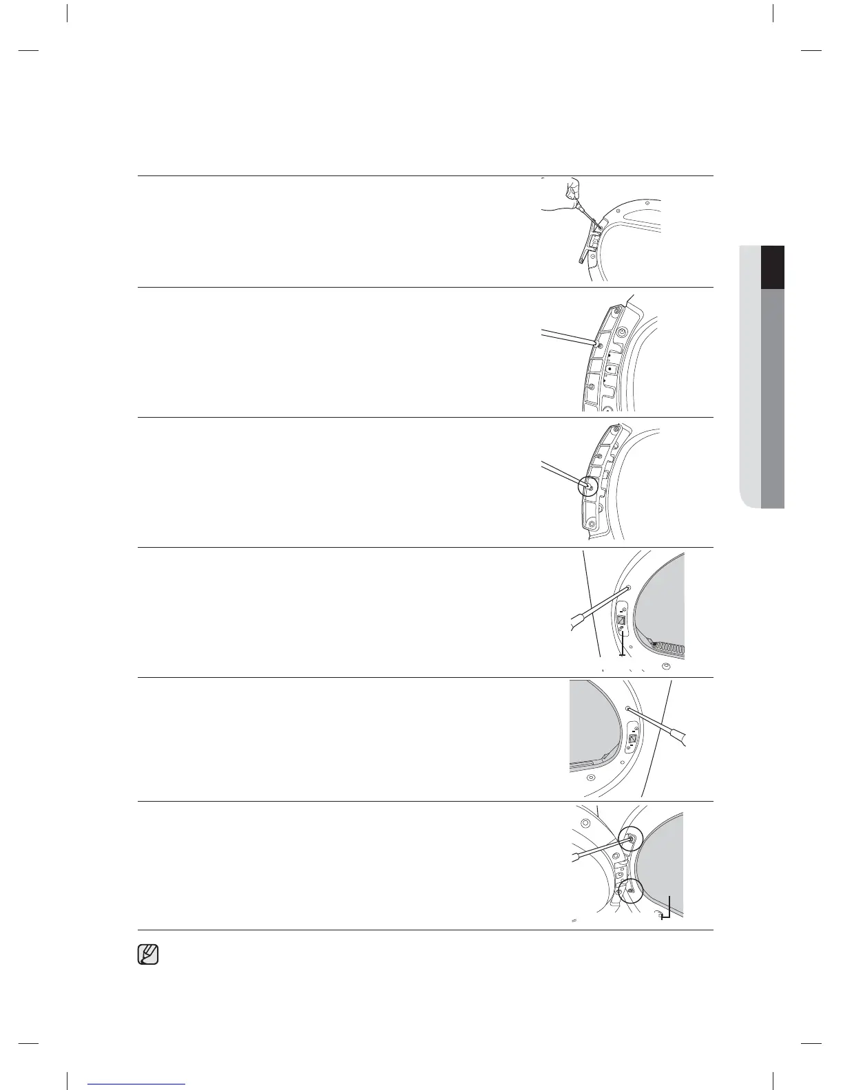 16. Dra åt de båda skruvarna från dörrgångjärnet.