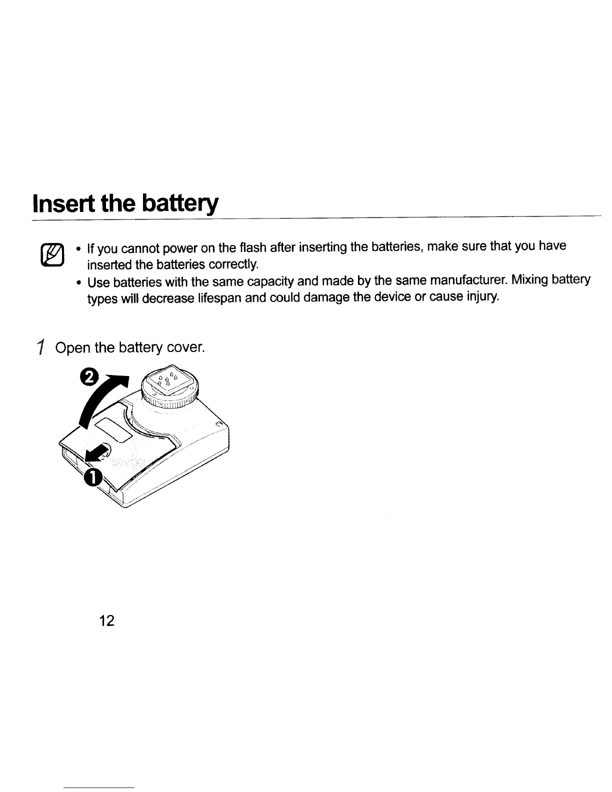 1 Open the battery cover.