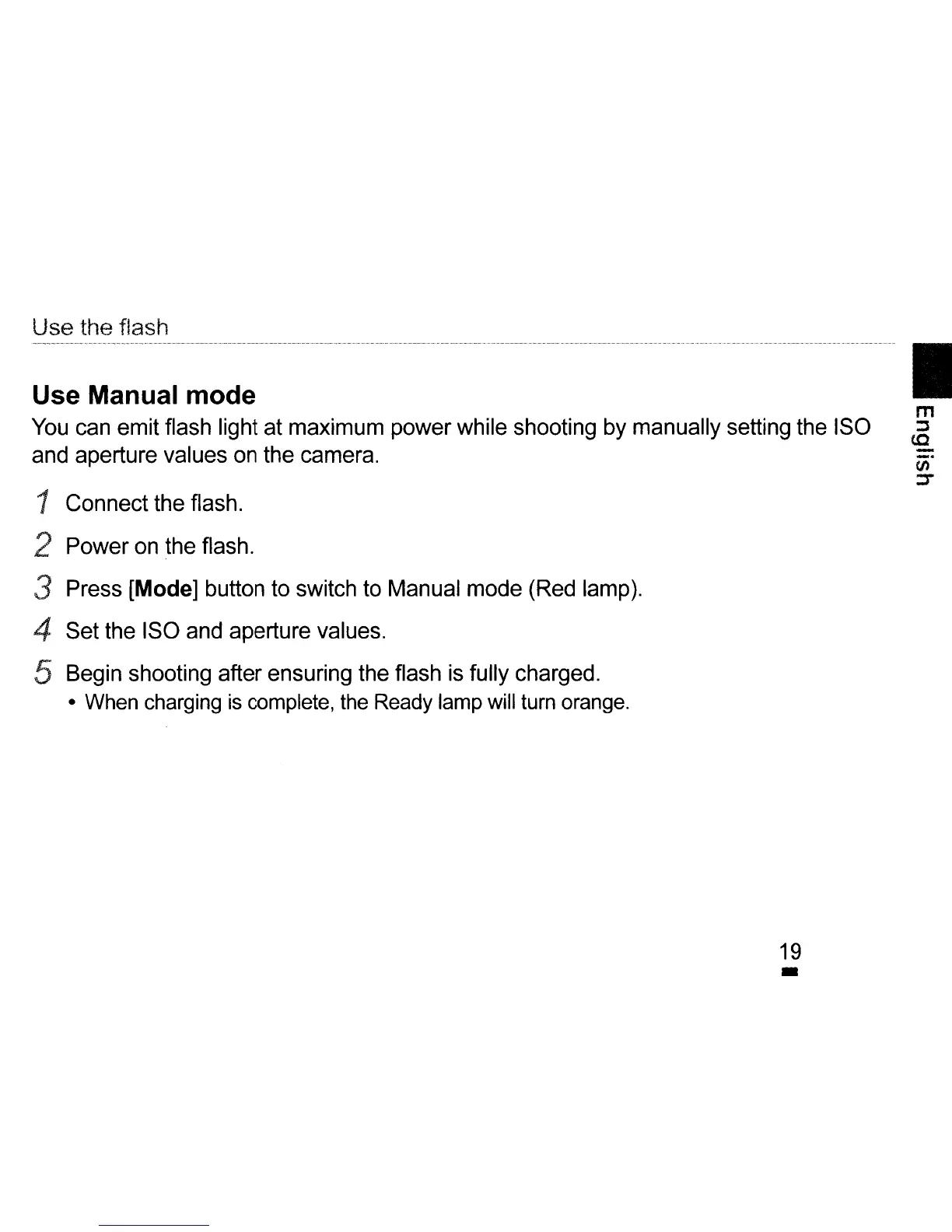 5 Begin shooting after ensuring the flash is fully charged.