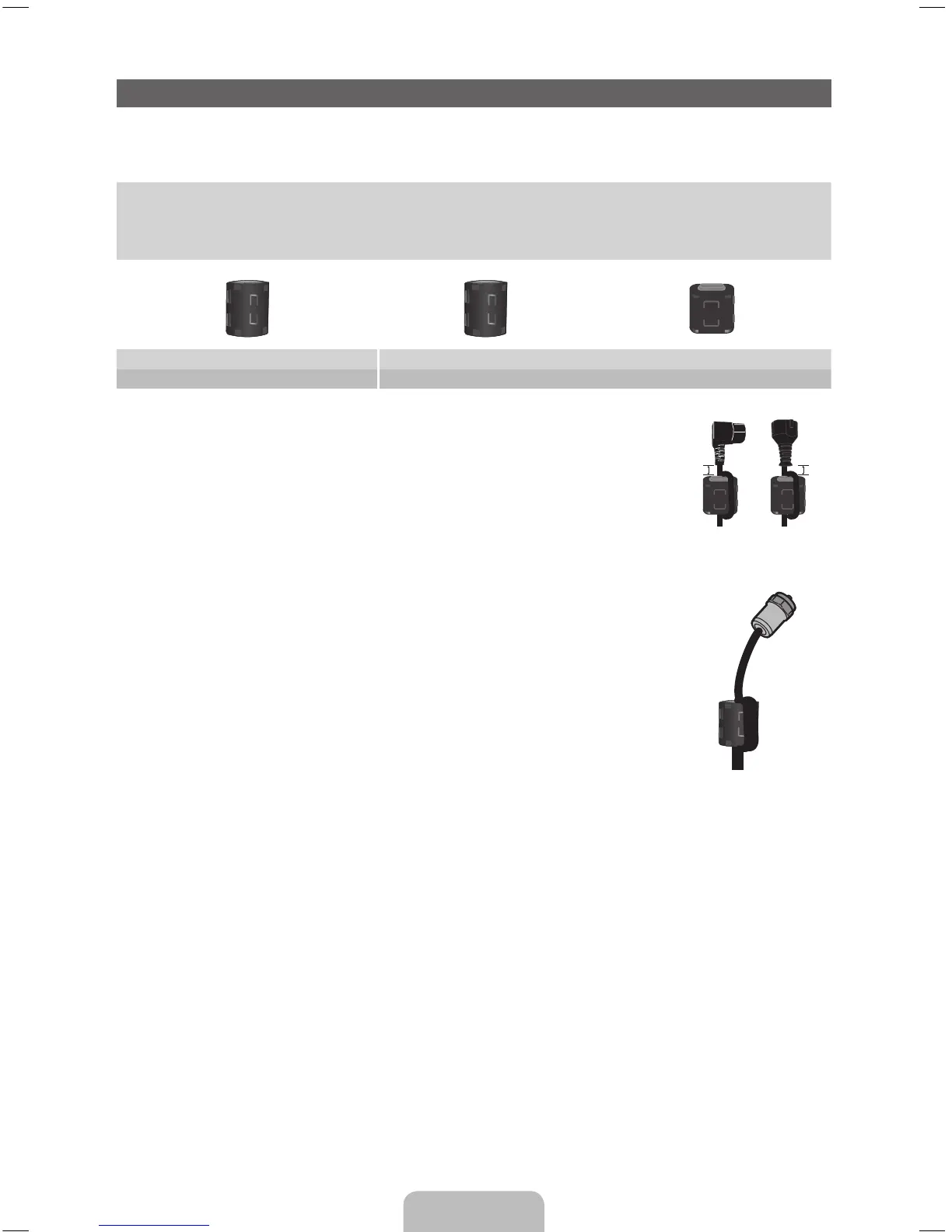 cable, open the ferrite core and clip it around the cable near the plug as shown in the figure.