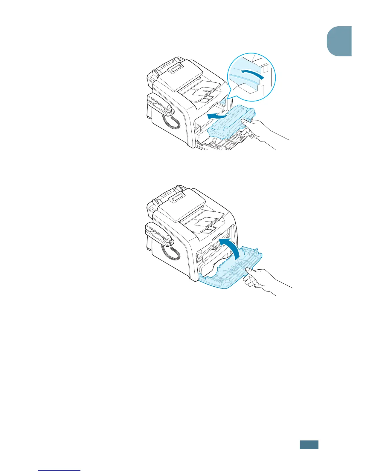 Close the front cover. Make sure that the cover is securely closed.