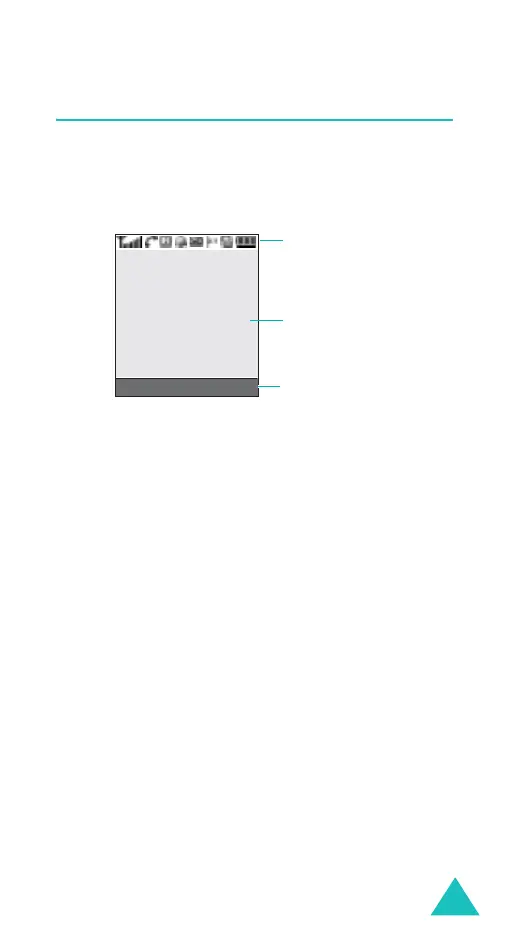 Middle lines Displays messages, instructions,