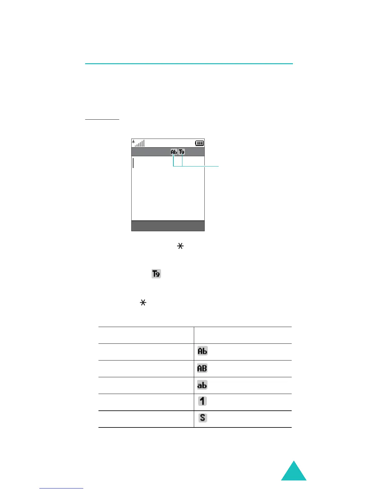 entered, you will notice the text input mode