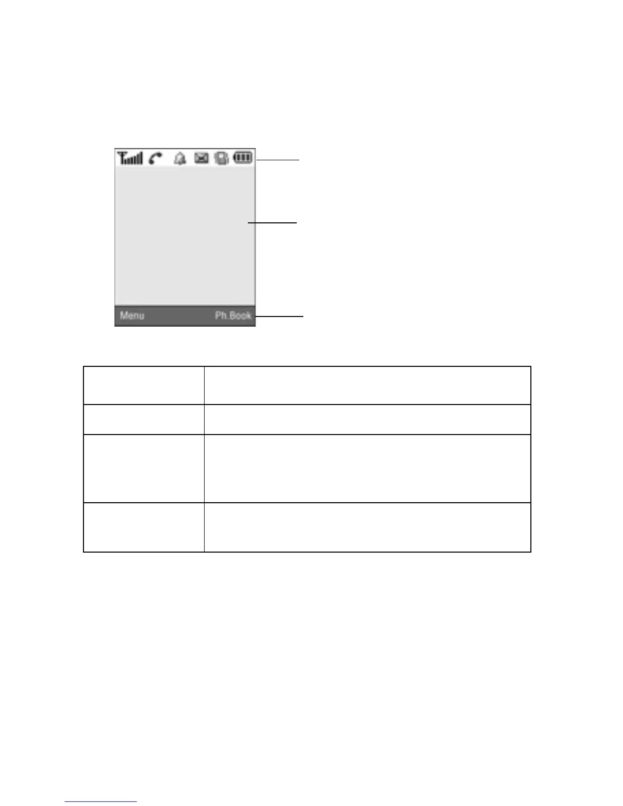Top line Displays various icons. See page 14.