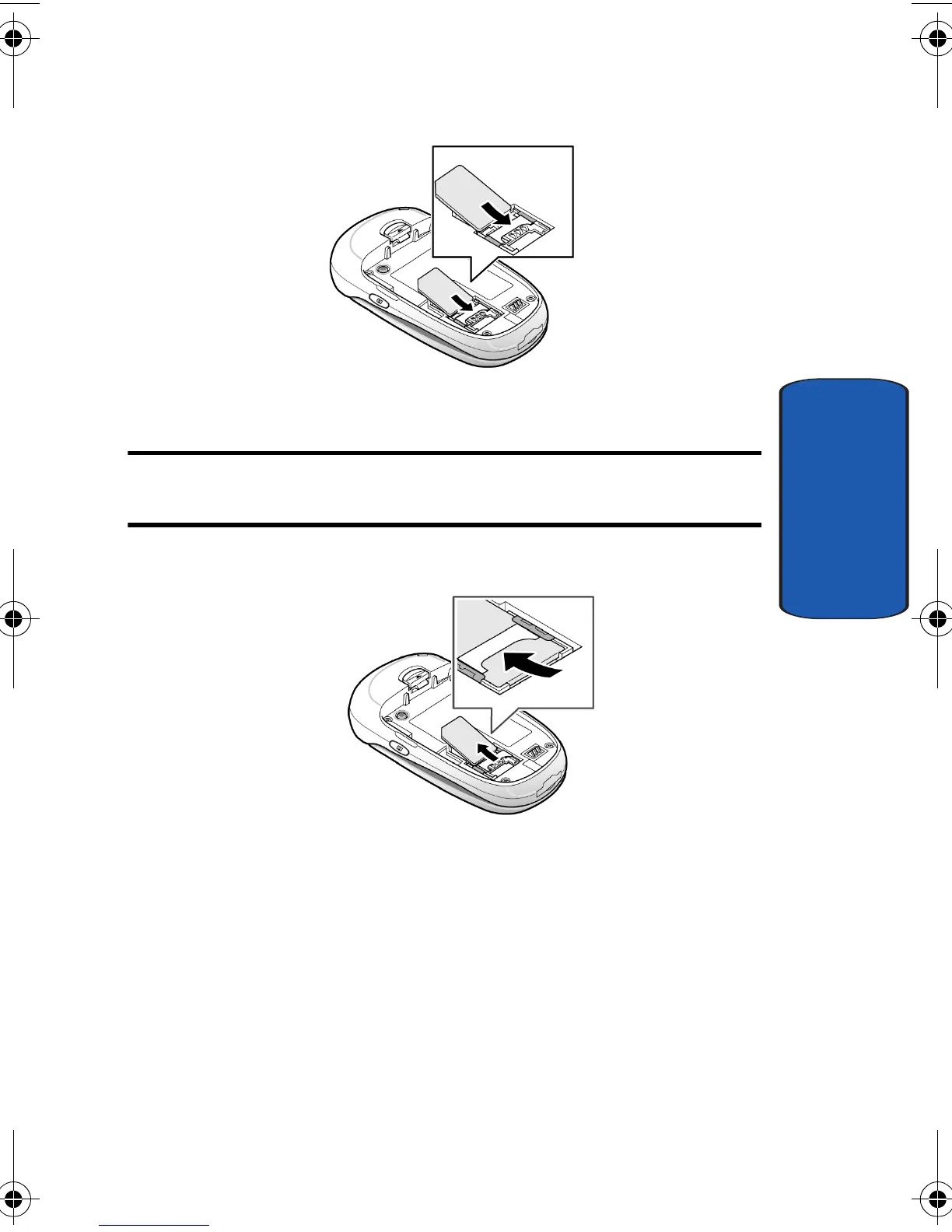Note: When you need to remove the SIM card, slide it, as shown, and