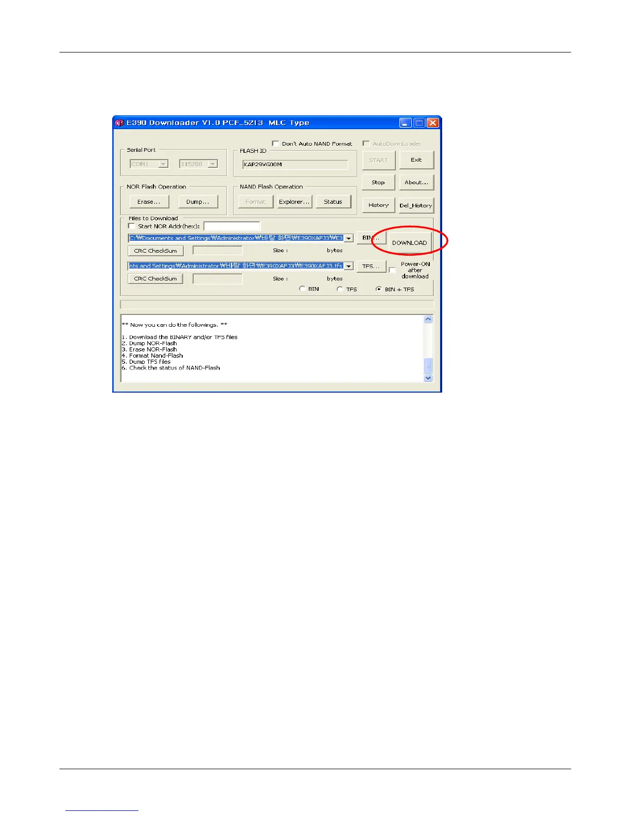 7. After confirming the memory type, press 'DOWNLOAD' button