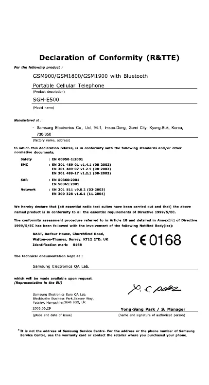 Other manuals for Samsung SGH-E500