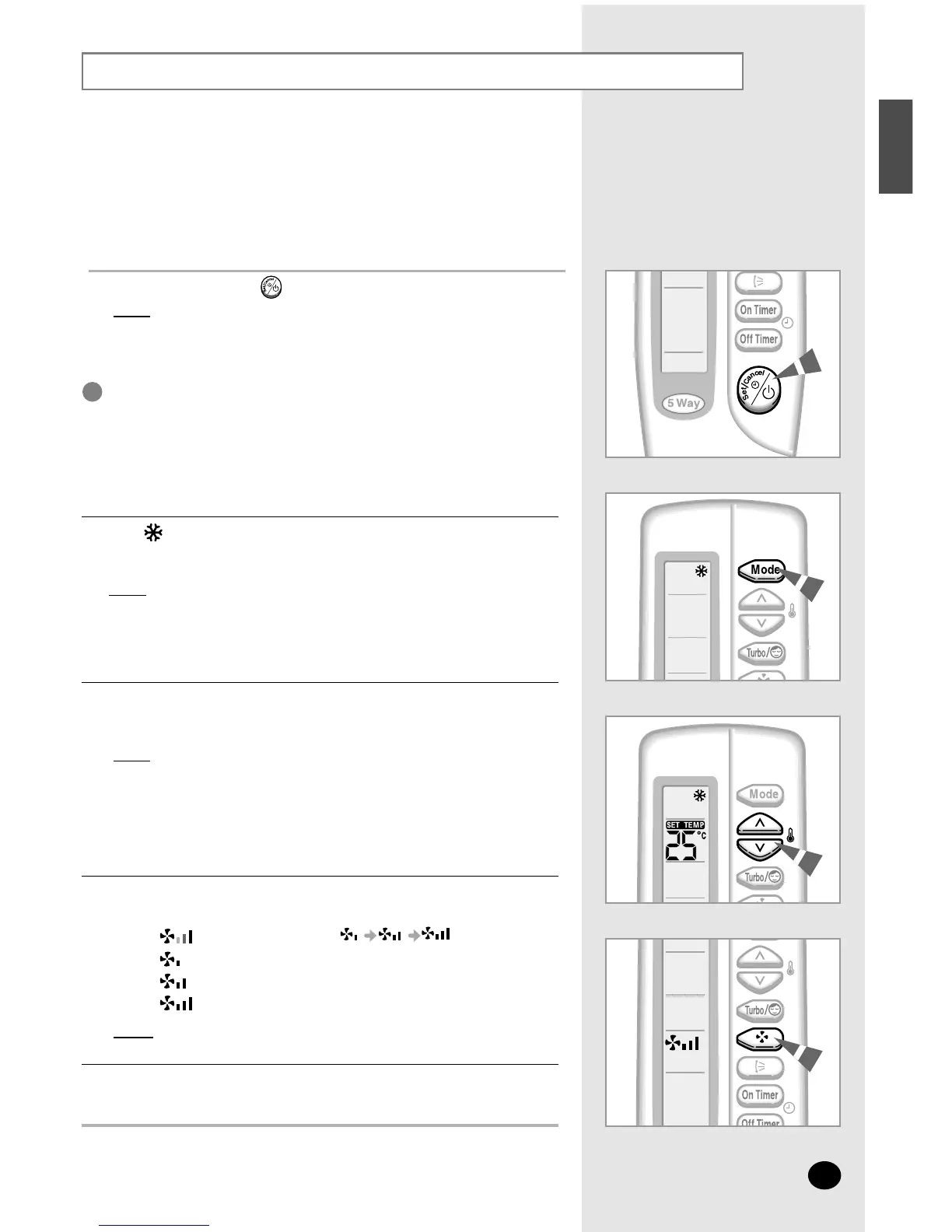 Select the fan speed by pressing the FAN button one or more times