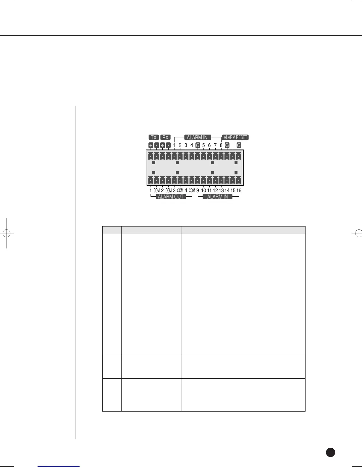 The Alarm IN/OUT port in the back of SHR-2160/2162 is composed of the following
