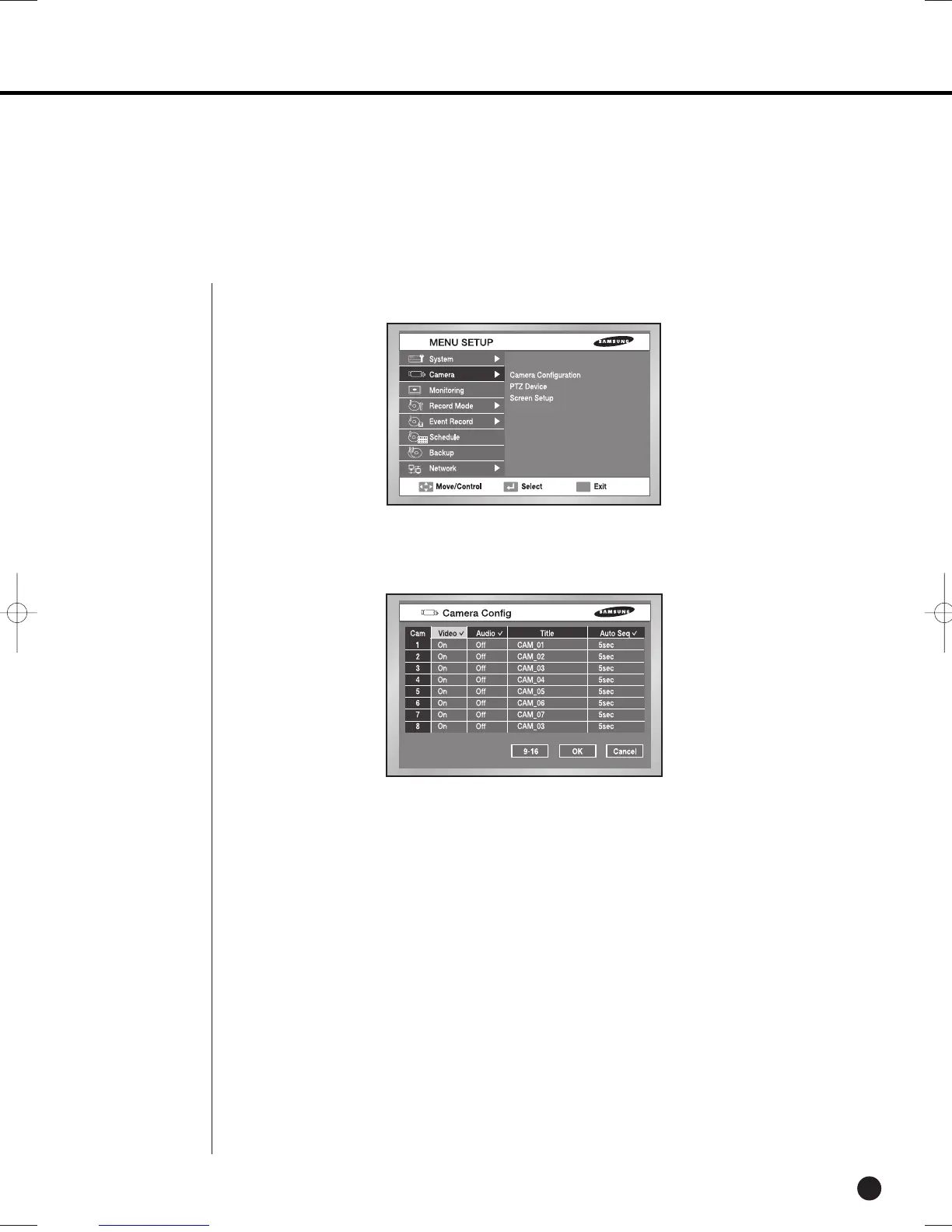 Audio/Cam name/Auto sequence setup are impossible in the Off channel.