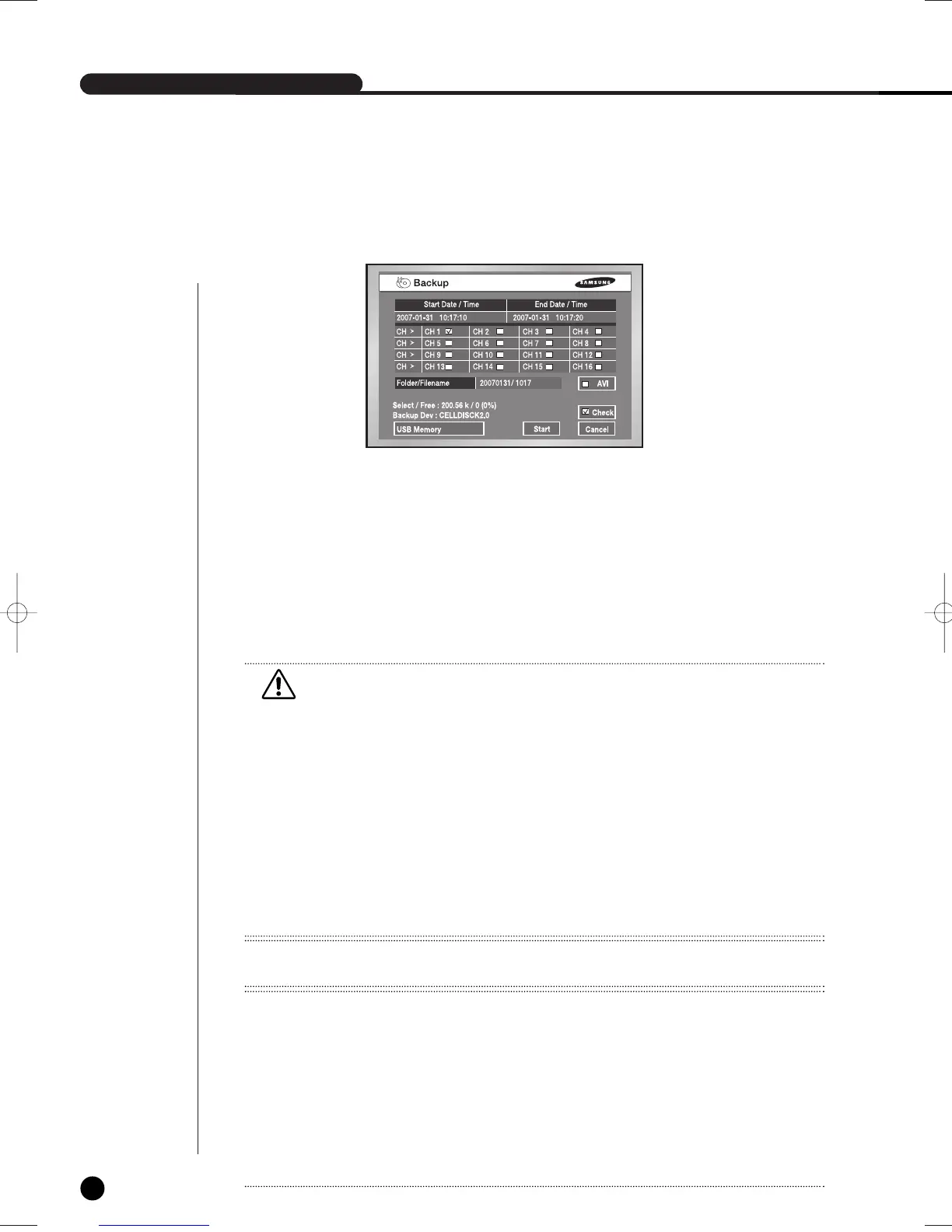 - The backup of the AVI format may take longer depend on a number of the channel and the DVR operation