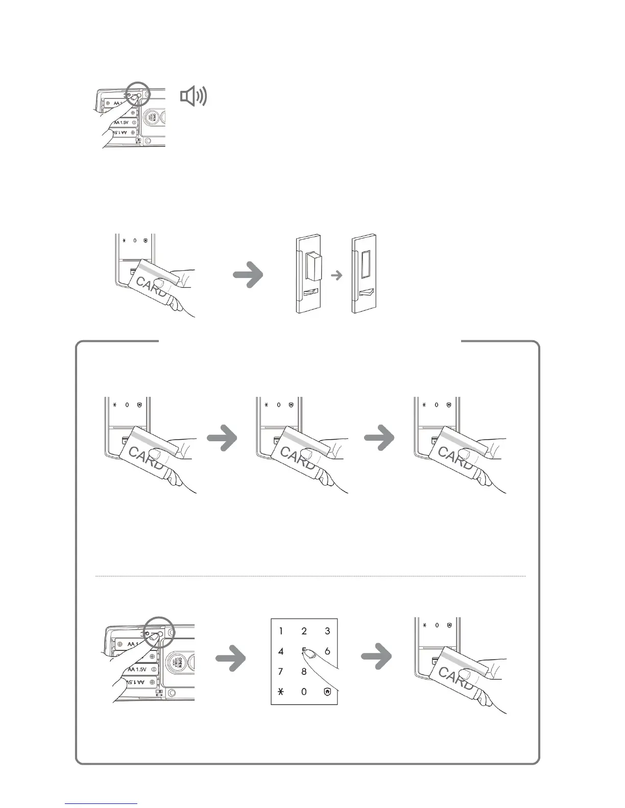 - Please refer to "Opening the Door from Outside with a Card or Key Tag" on page 18.