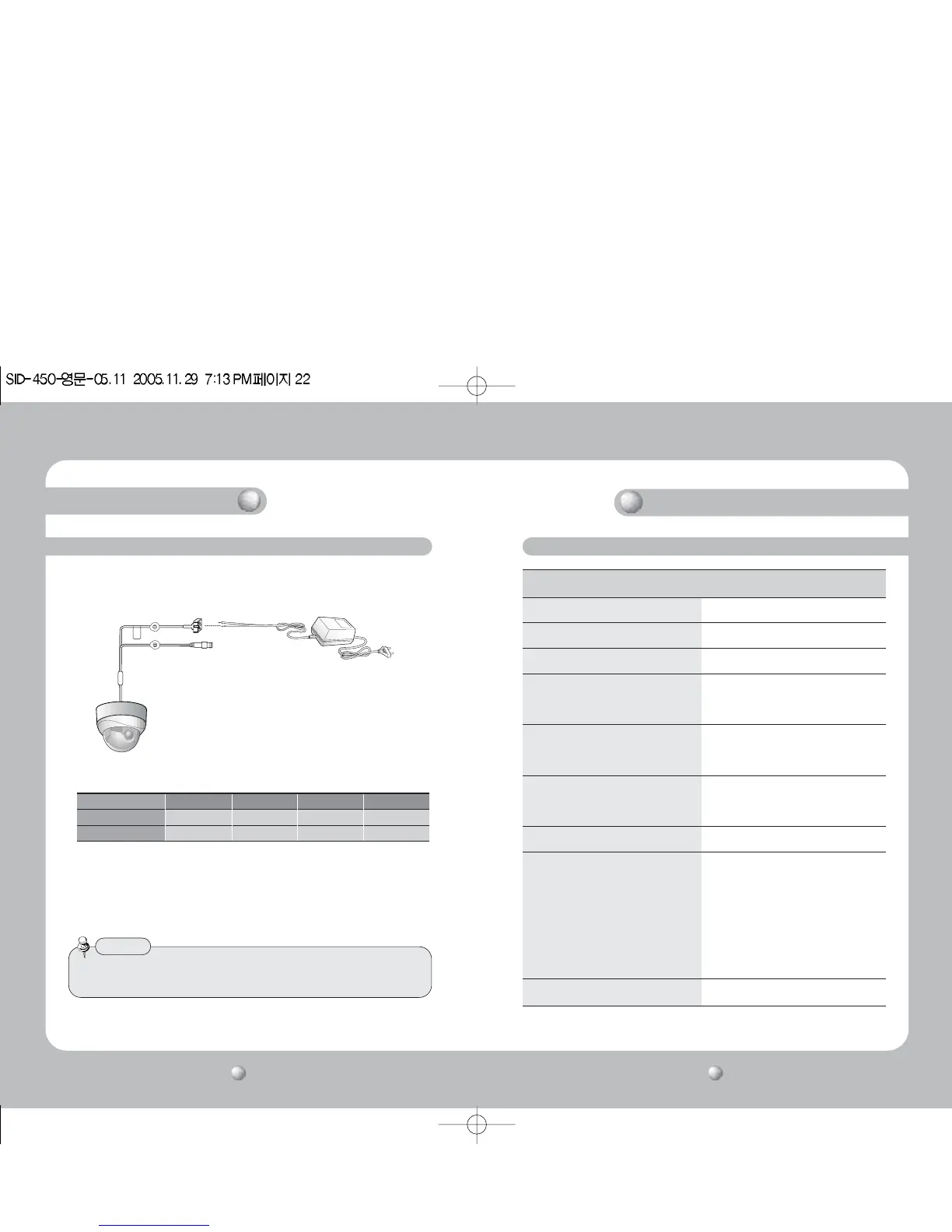 *Standard voltage for camera operation : DC 12V±10%
