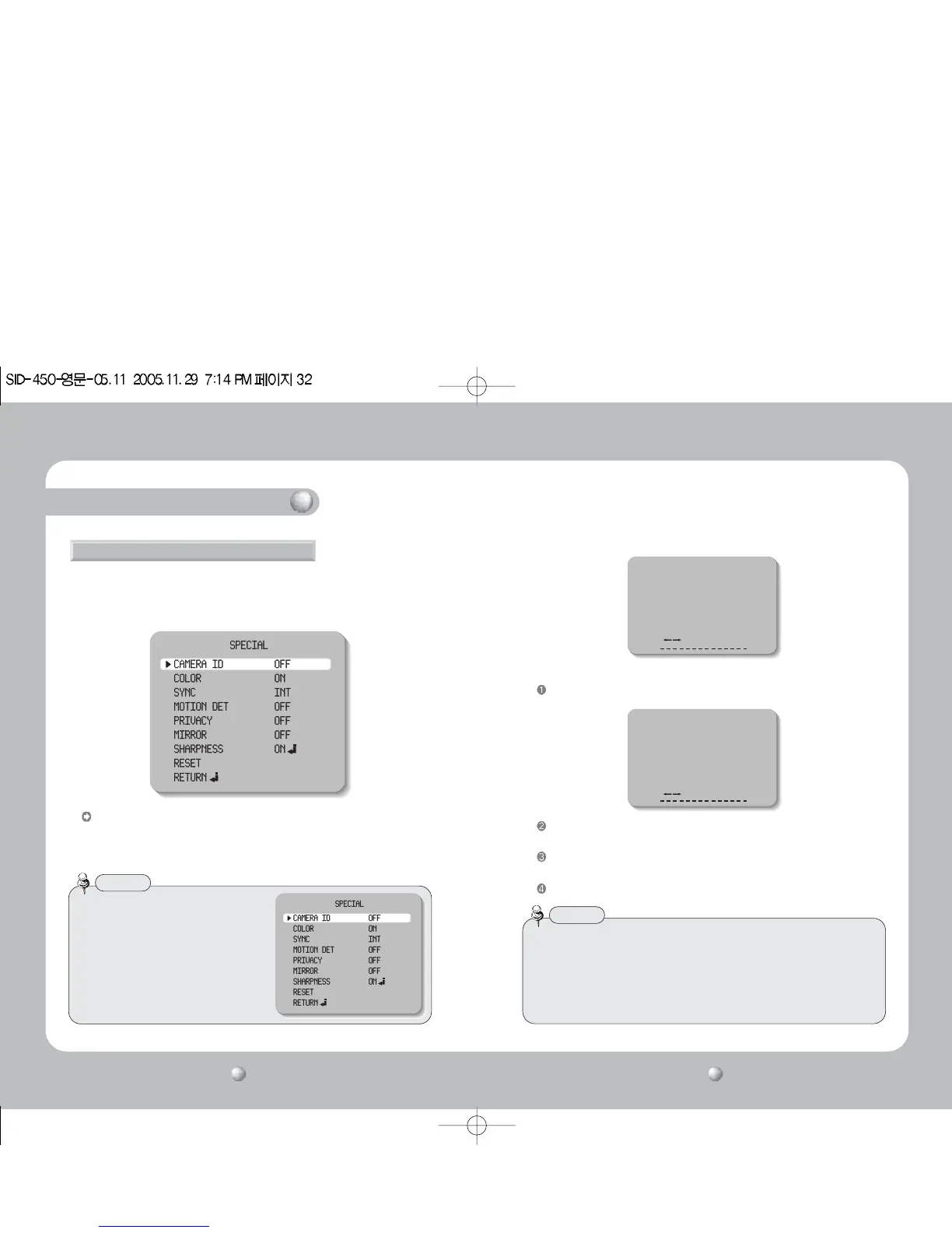 CAMERA ID: If the ID is input, the camera ID appears on the monitor.
