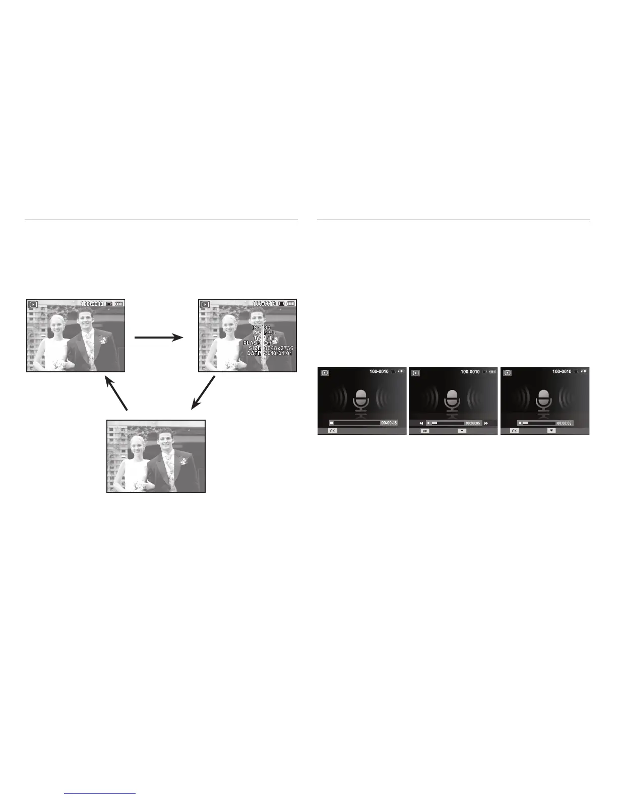 ·In Stop mode : Plays a still image with a voice memo, a voice