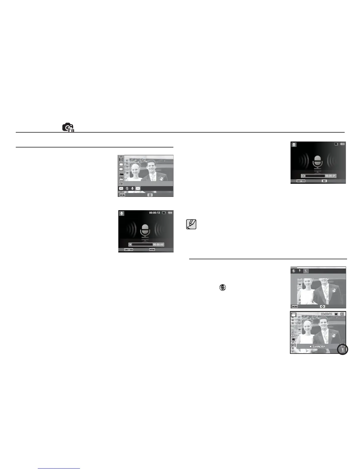 Press the shutter button to record a voice.