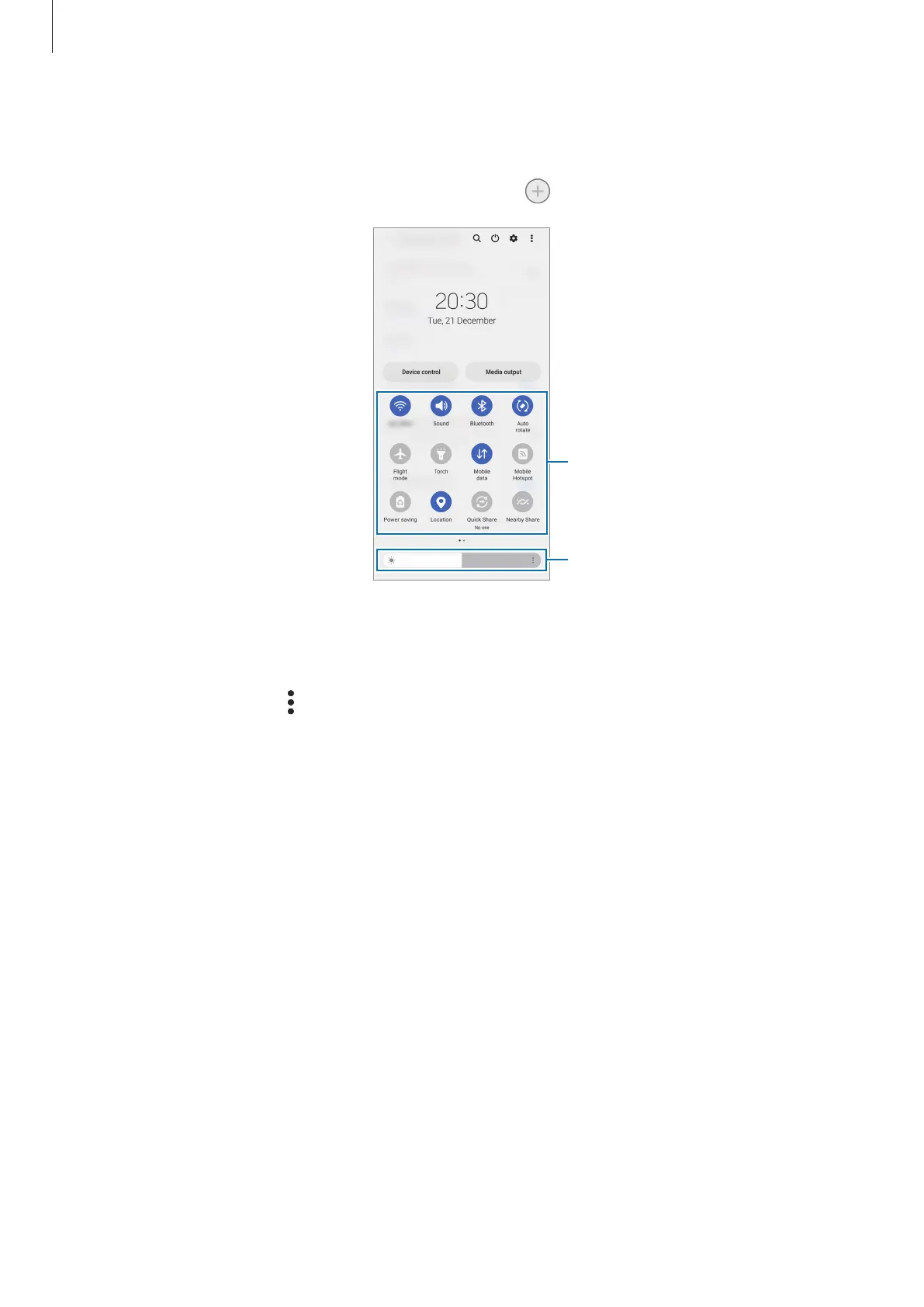 Tap quick setting buttons to activate certain features. Swipe downwards on the notification
