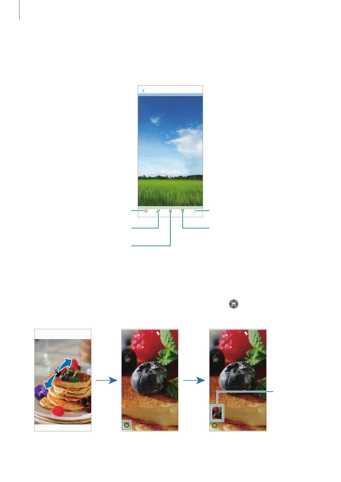 2 Spread two fingers apart on the area you want to save and tap .
