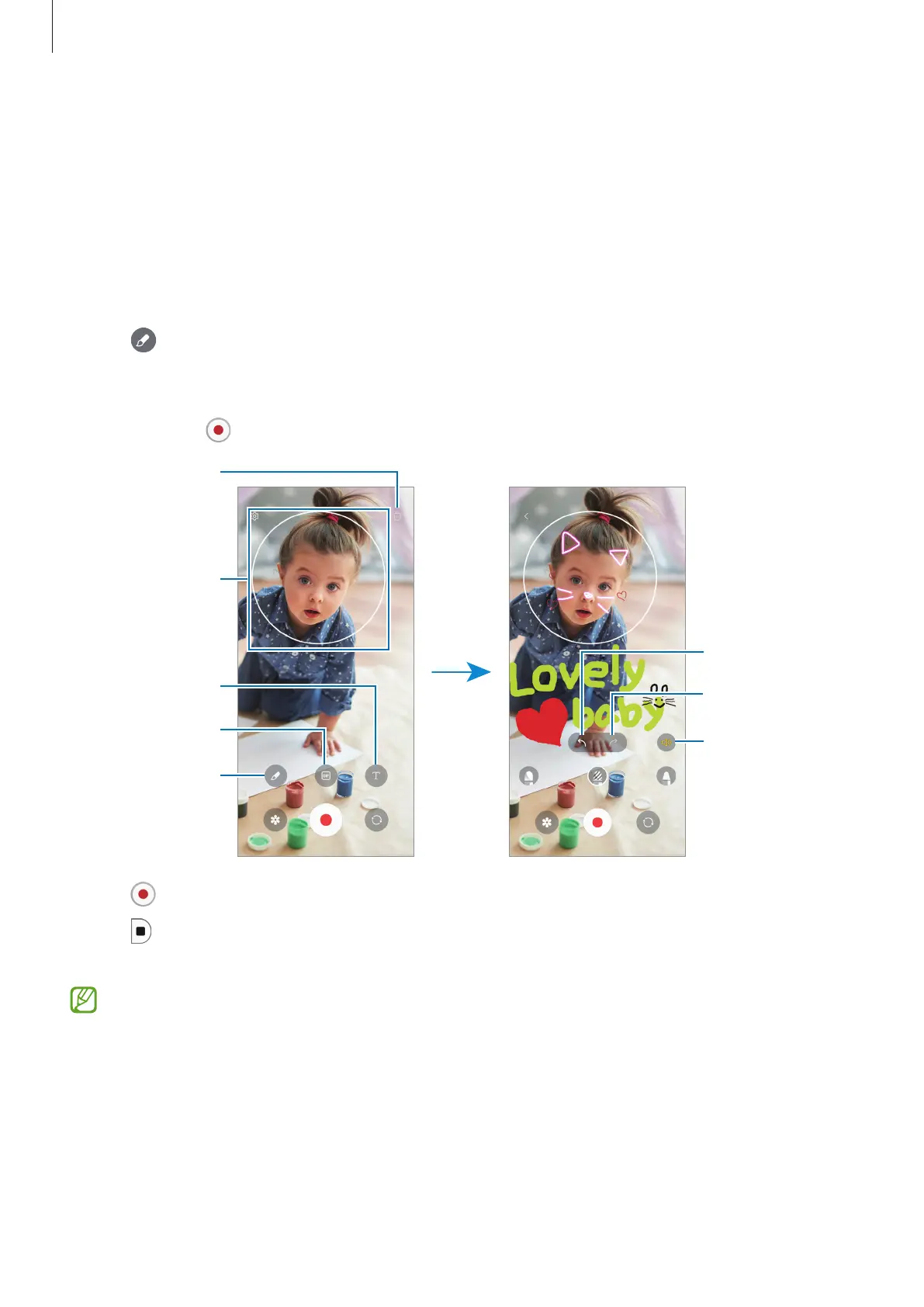 Capture pictures or videos with various stickers.