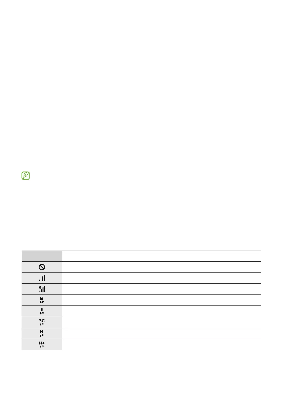 Indicator icons appear on the status bar at the top of the screen. The icons listed in the