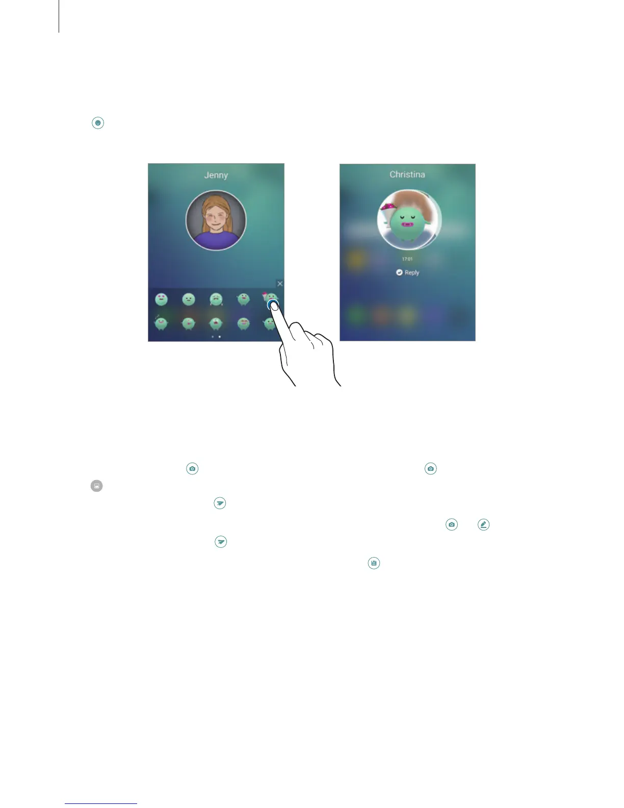 under your contact’s profile image. Swipe to the left or right and select an emoticon to