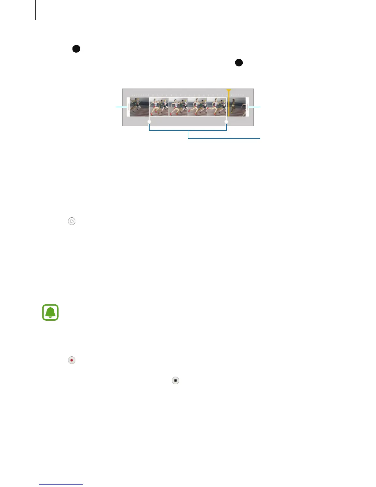 Record a video for viewing it in fast motion. You can specify sections of your videos to be