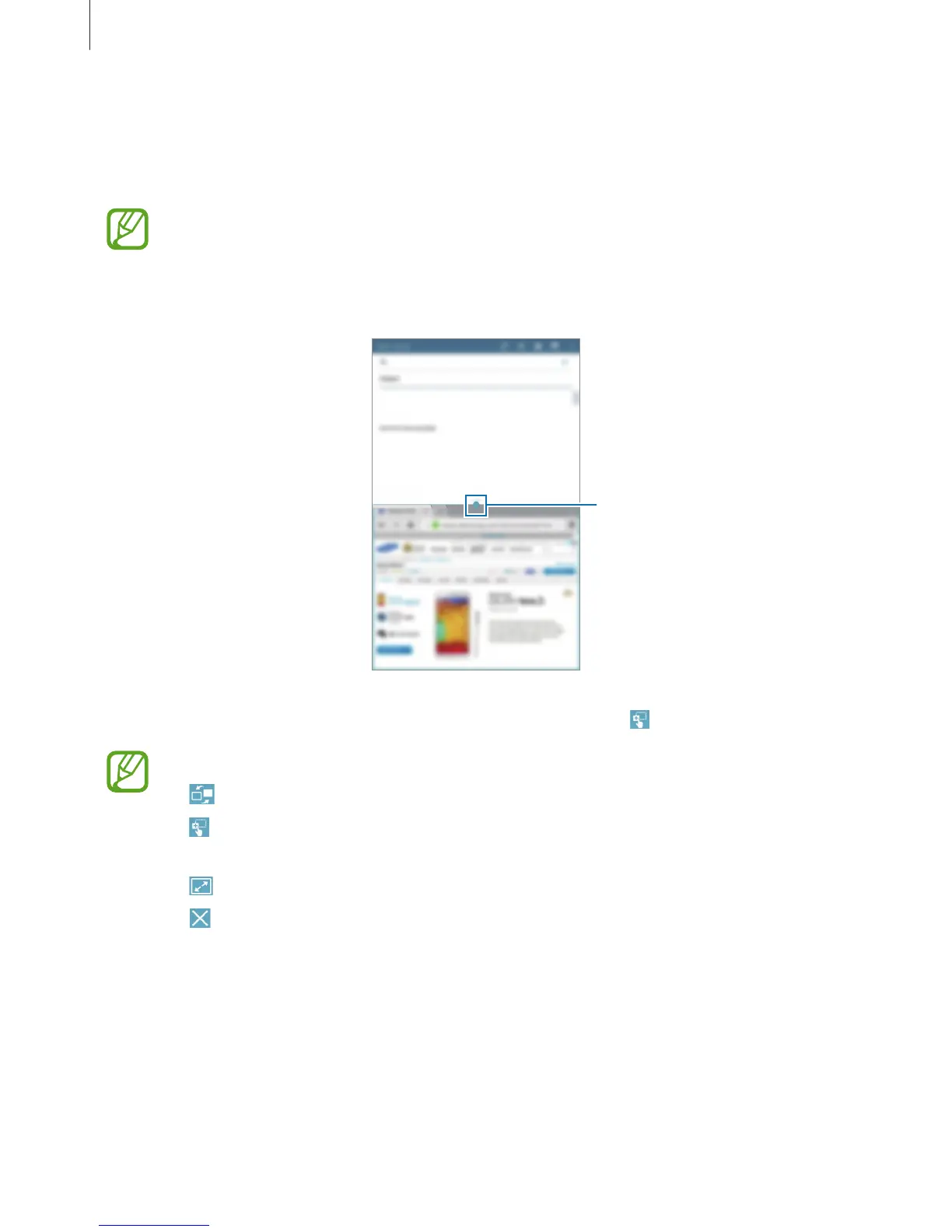 Tap the circle between application windows to access the following options: