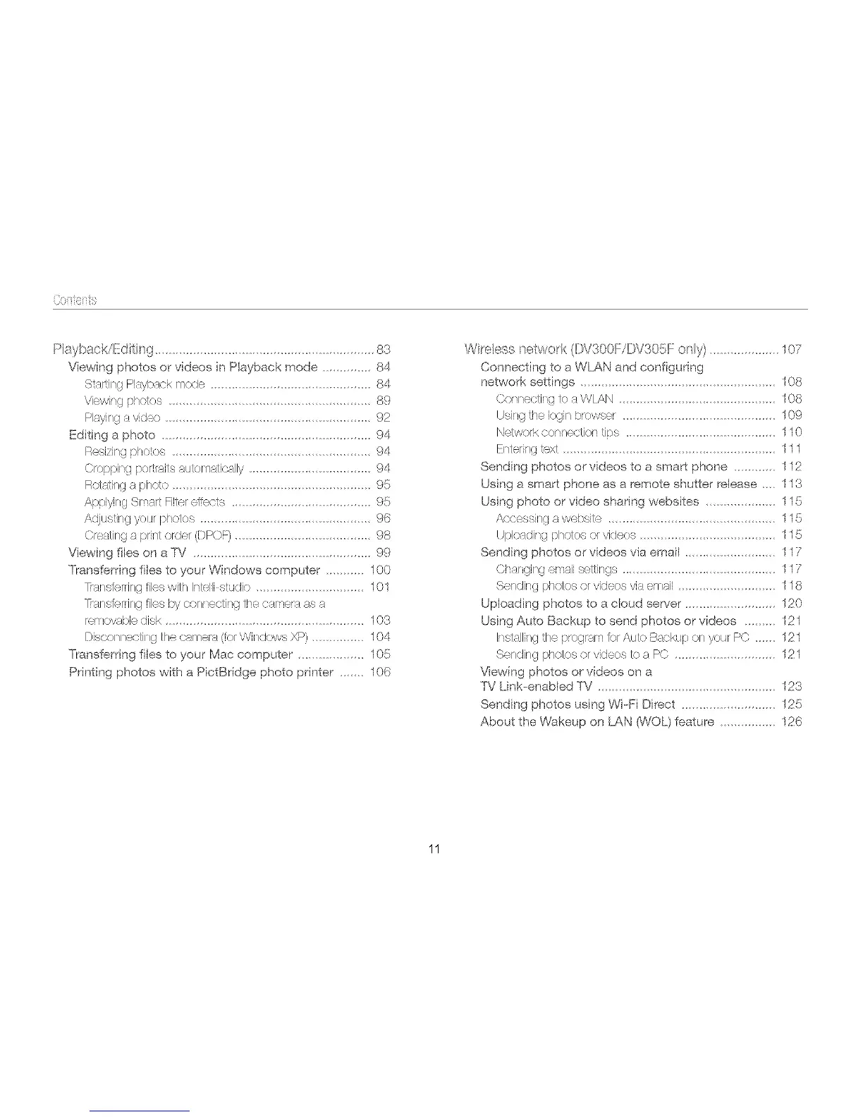 Wireless network (DV300F/DV305F only) .............107